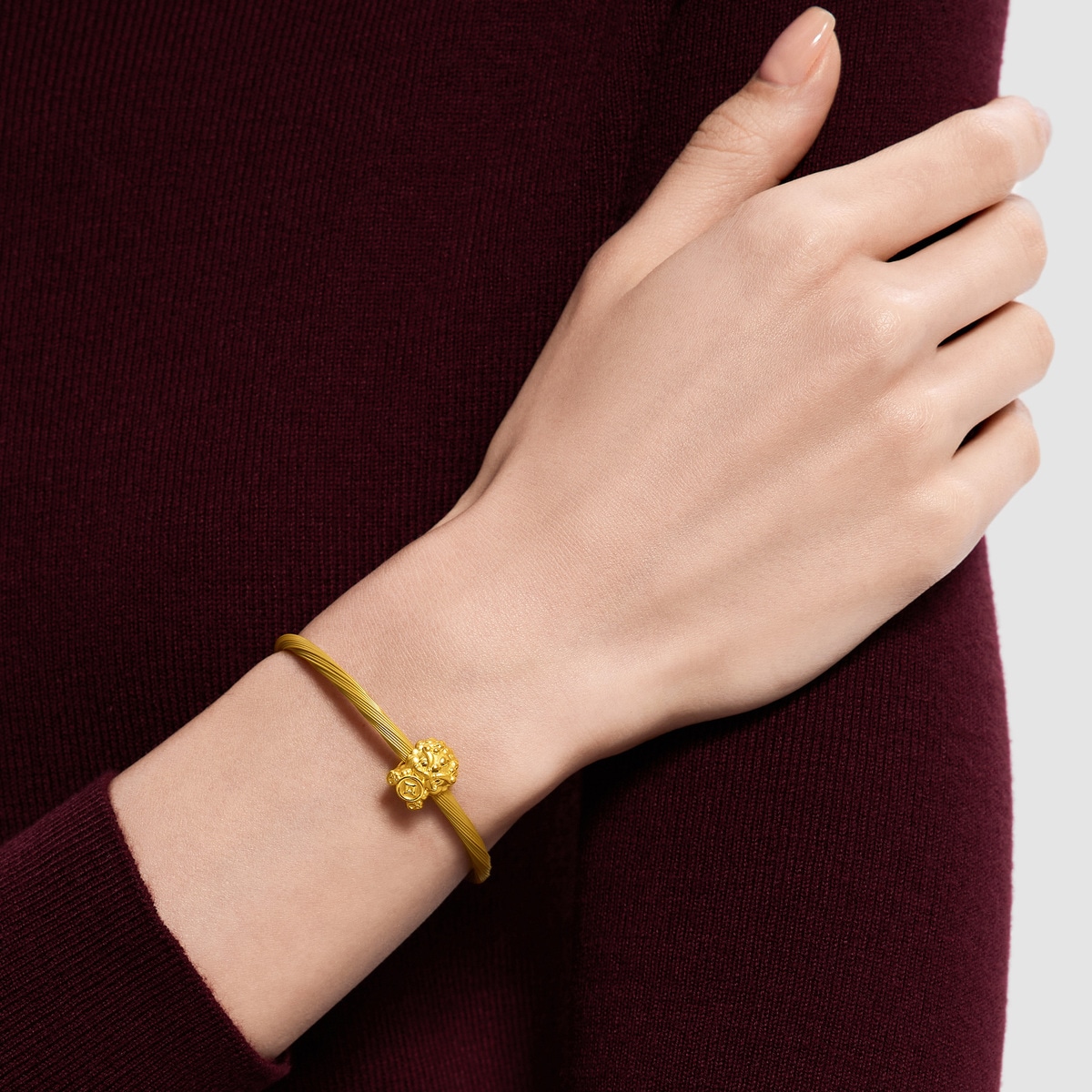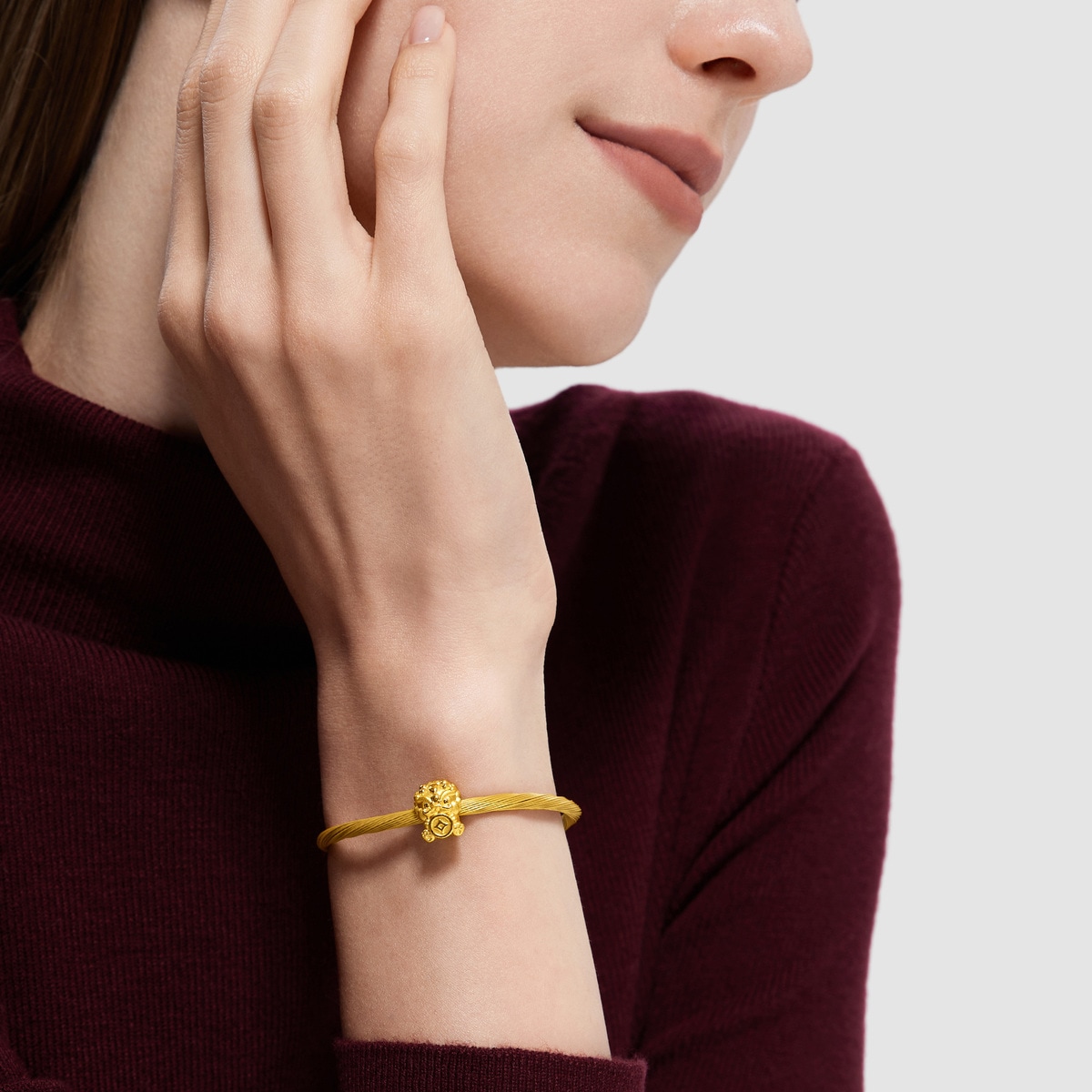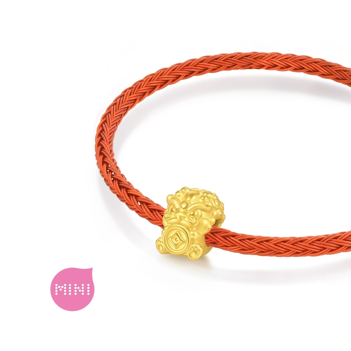 周生生足金串珠以「貔貅寶寶」為設計元素,採用卓越硬黃金電鑄工藝,呈現以財為食的貔貅口叼銅錢的可愛造型,質感精緻細膩,象徵招來八方之財,祝願帶來富貴與財運 。