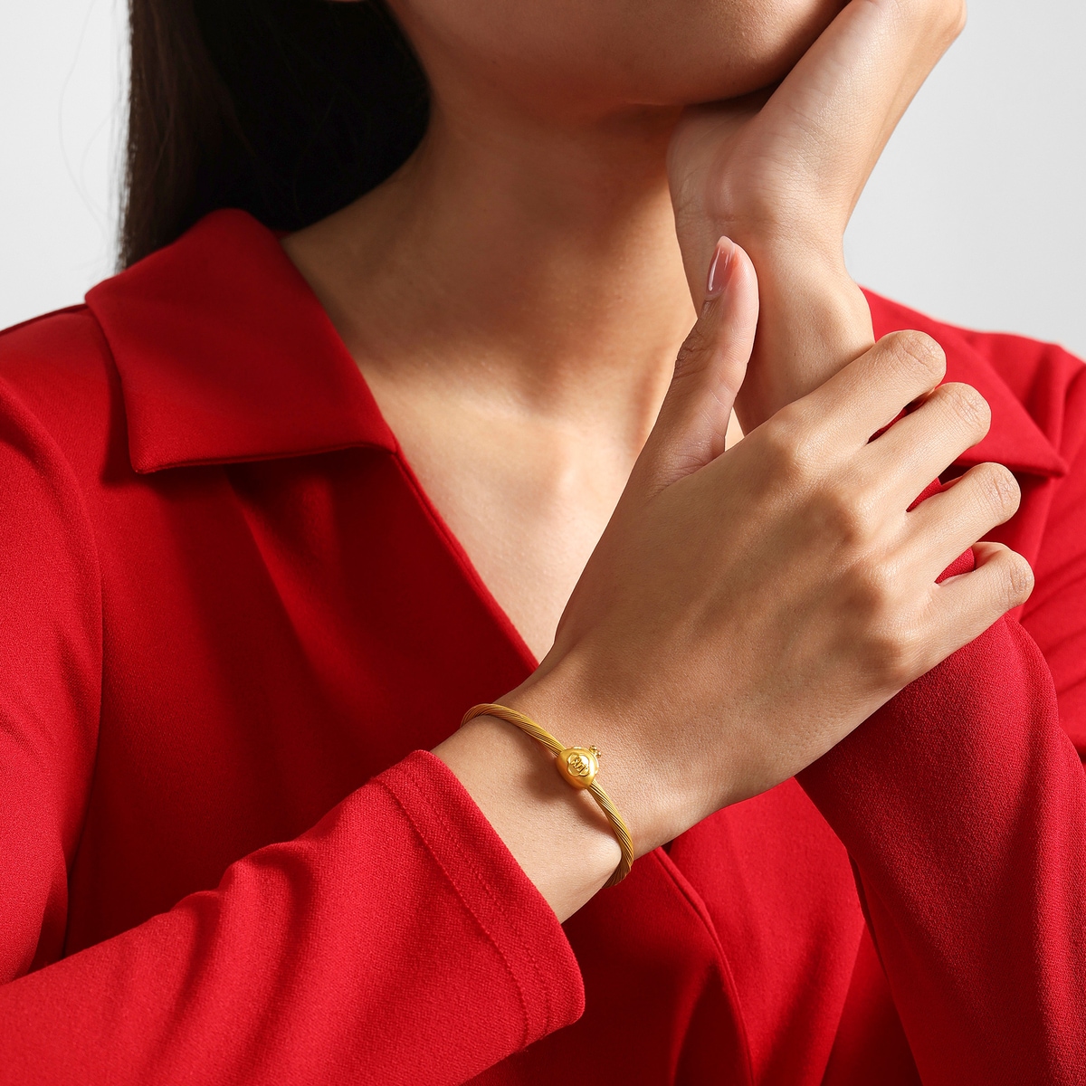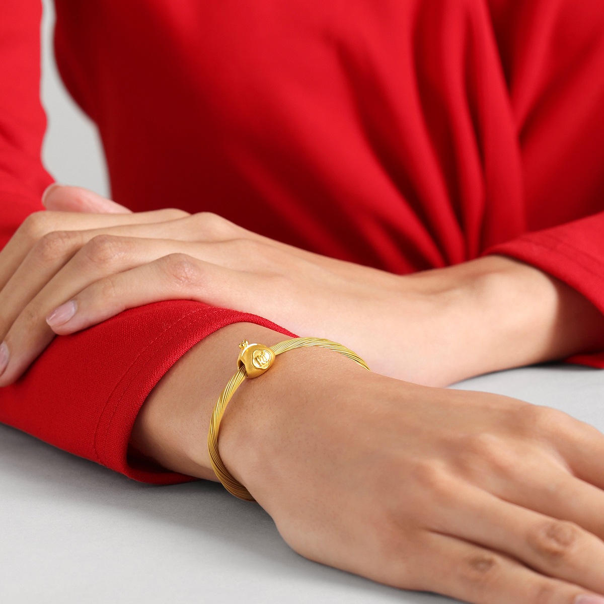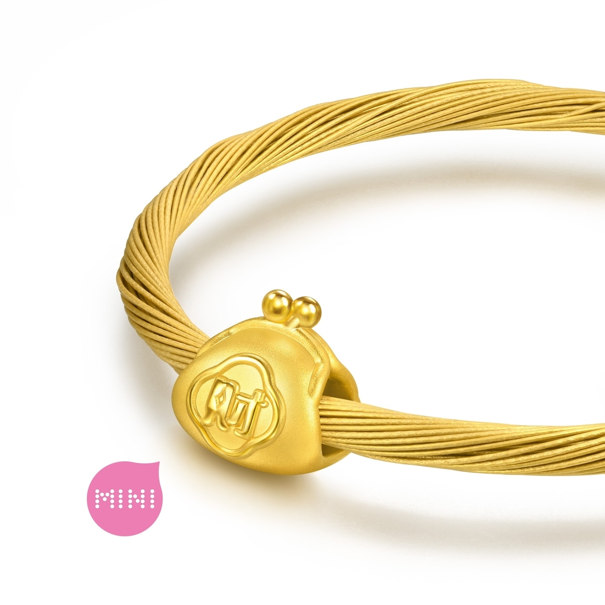 周生生足金串珠以可愛錢包為設計元素,採用卓越硬黃金電鑄工藝,打造圓潤飽滿的精緻造型。錢包表面刻有「財」字,背面加入銅錢紋樣,寓意荷包豐厚、財運亨通,為佩戴者送上美滿祝福。