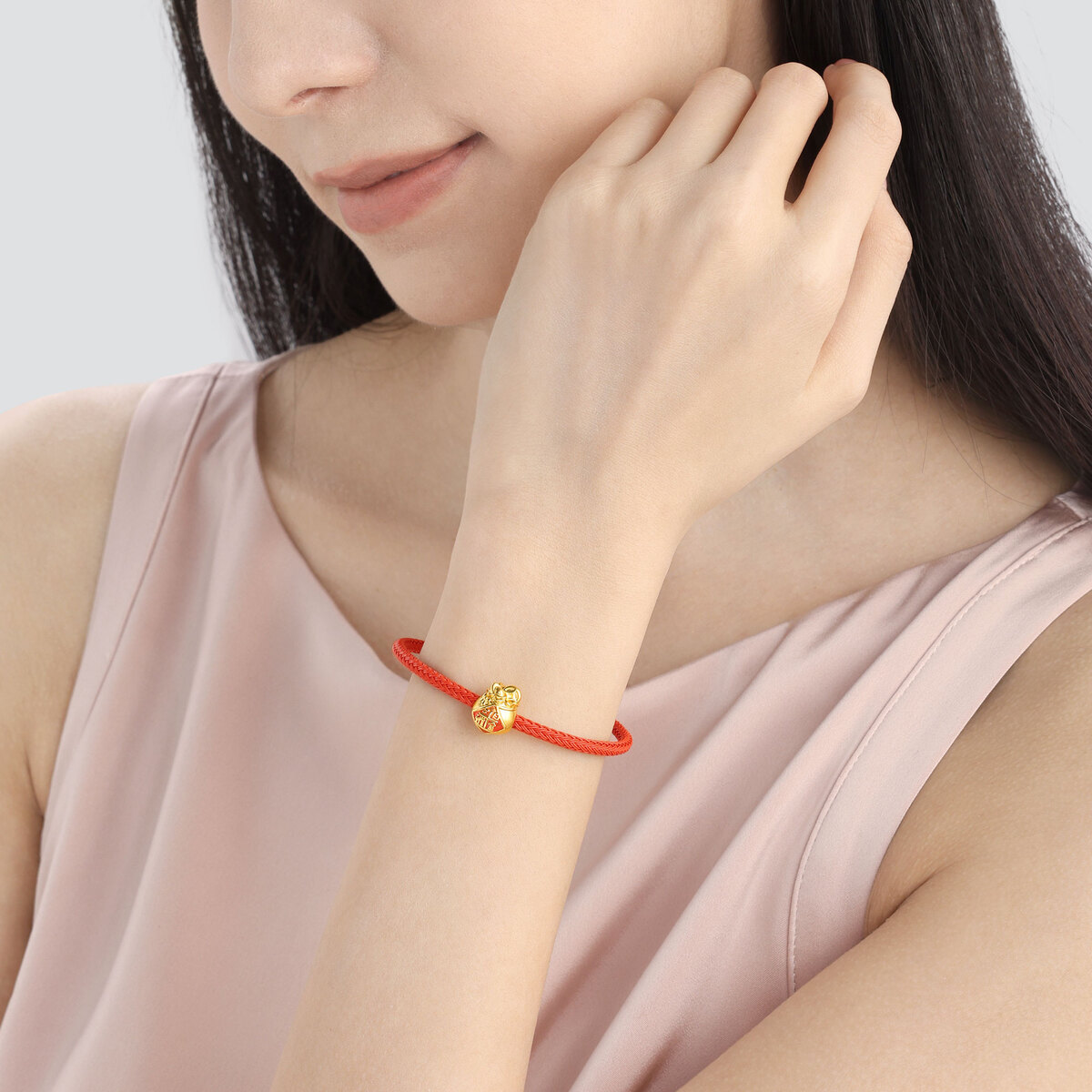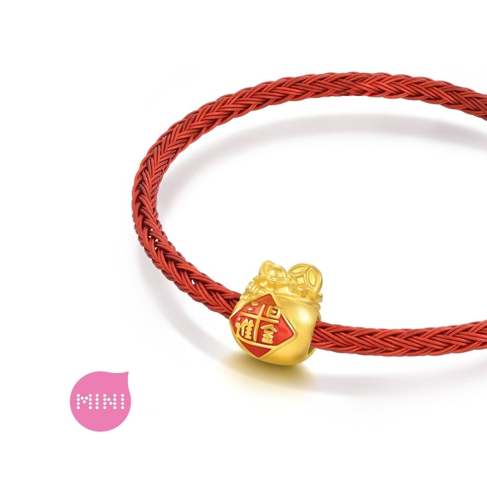 周生生Charme「寶貝」足金串珠,以招財福袋為設計靈感,特別結合硬金電鑄及彩繪塗層工藝,質感細膩,色彩鮮明奪目。福袋滿載元寶和錢幣,象徵累積豐碩財富,結合「日進斗金」的吉祥語,寓意「招財進寶、財運亨通」。