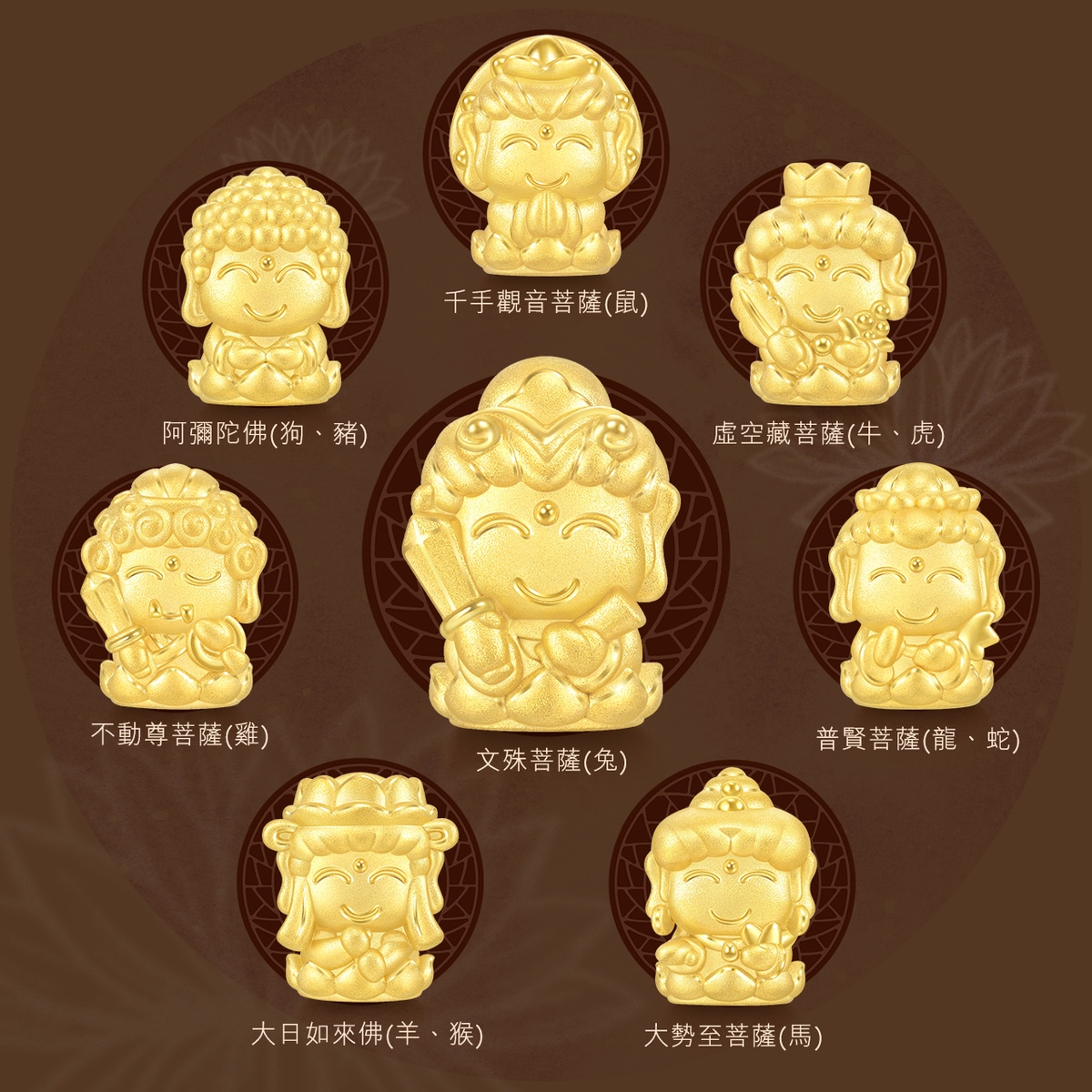 Charme 「祥瑞祝福系列」足金阿彌陀佛(狗豬本命佛)串飾