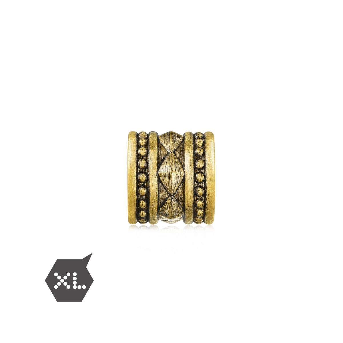 黃金串飾以窩釘為設計主題,同時運用了硬金電鑄及酷黑工藝,設計率性前衛。