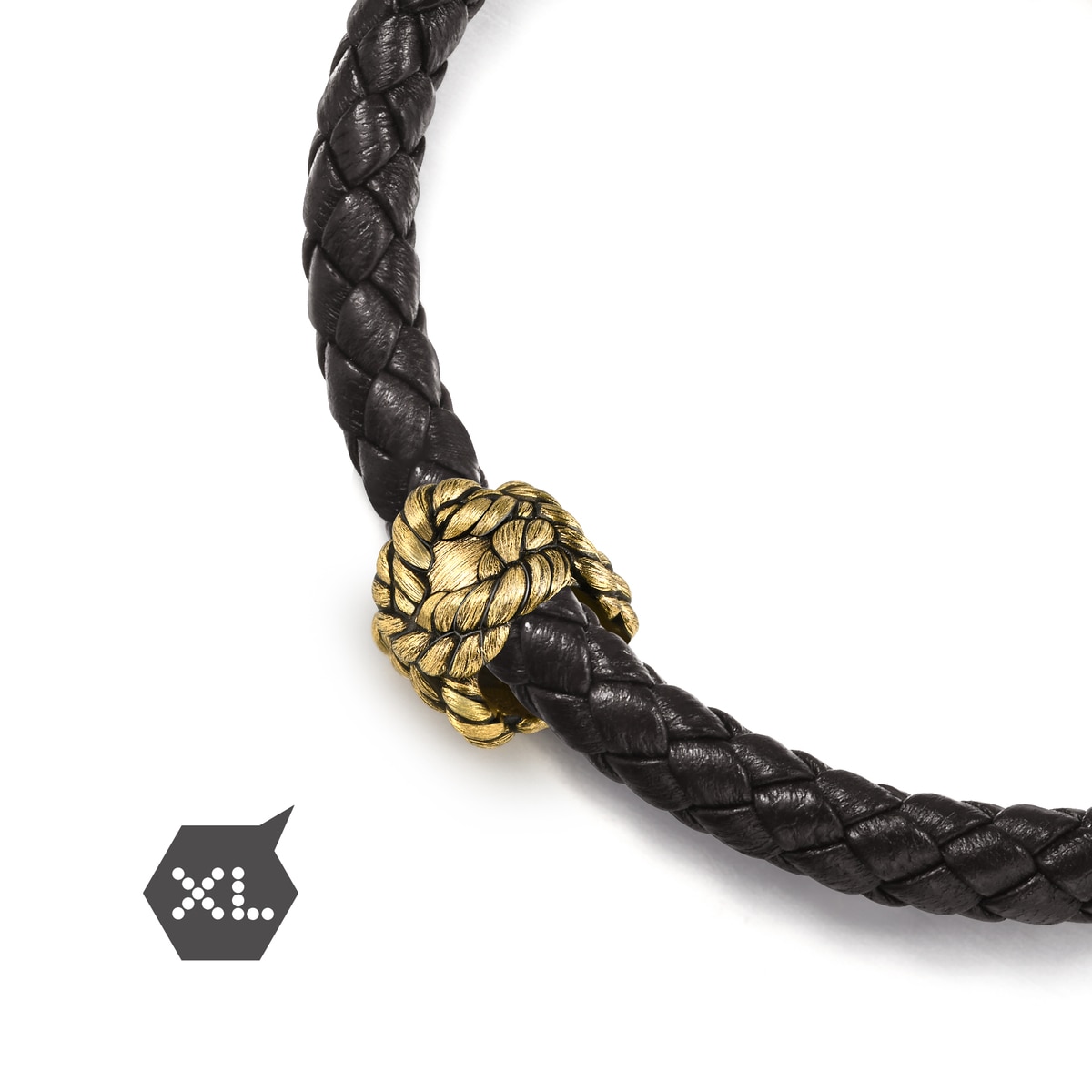 周生生足金串珠以大力神結Hercules Knot為靈感代表婚禮,象徵不朽的愛與承諾,亦有用作護身符,寓意平安護身。以硬金電鑄和酷黑工藝打造,令串珠不易變型,繩結紋理細膩,極具質感。
