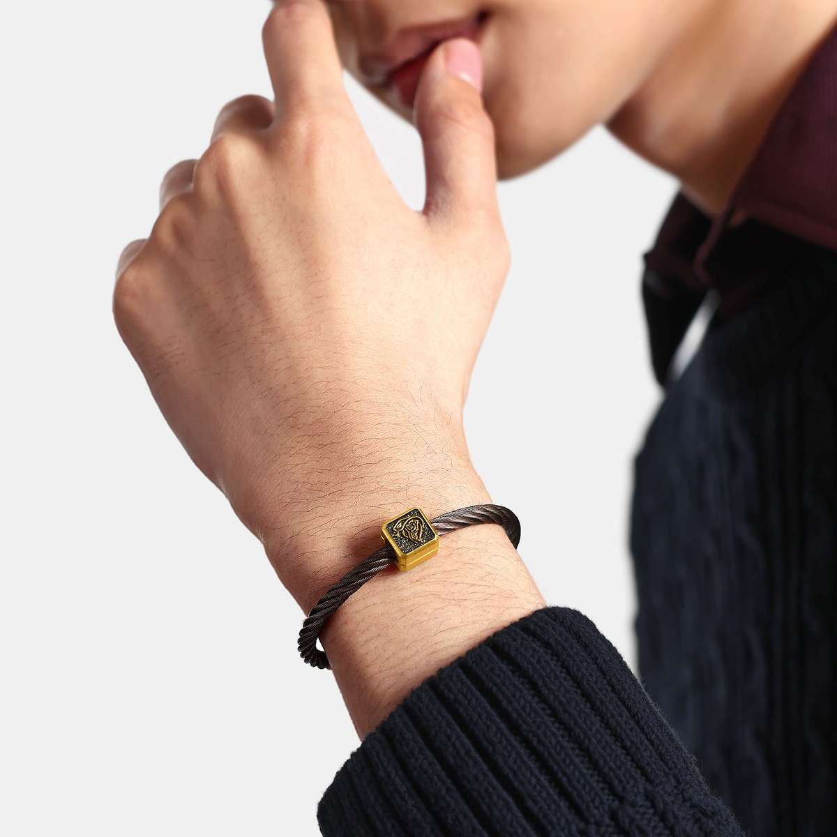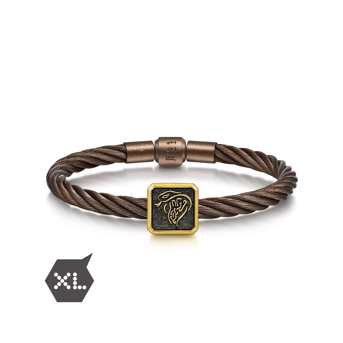 周生生足金十二生肖串珠,生肖圖騰靈感源自「凱爾特結」,以卓越硬黃金電鑄及酷黑工藝,呈現深邃紋理與質感,背面浮雕生肖漢字,演繹時尚型格。「蛇」是智慧與機敏的象徵,代表冷靜、靈活與敏捷。