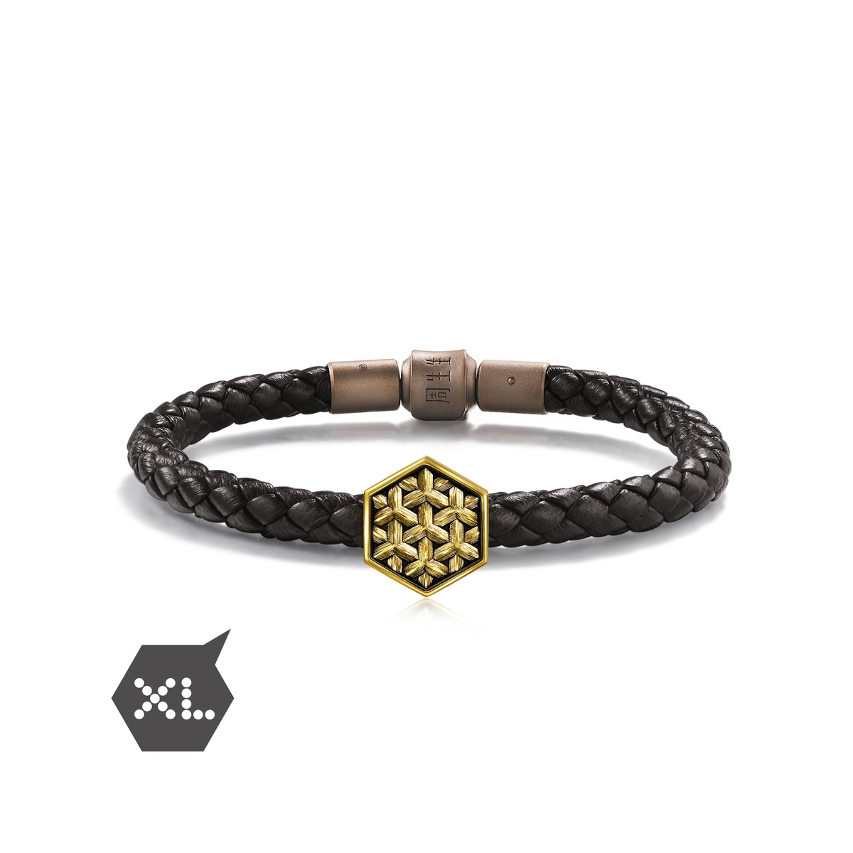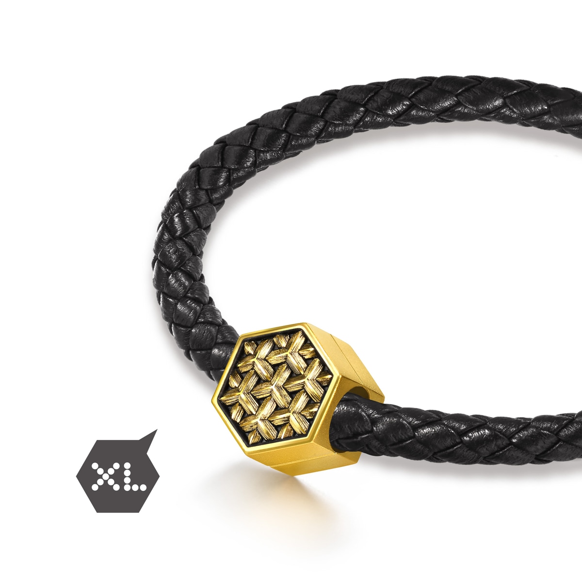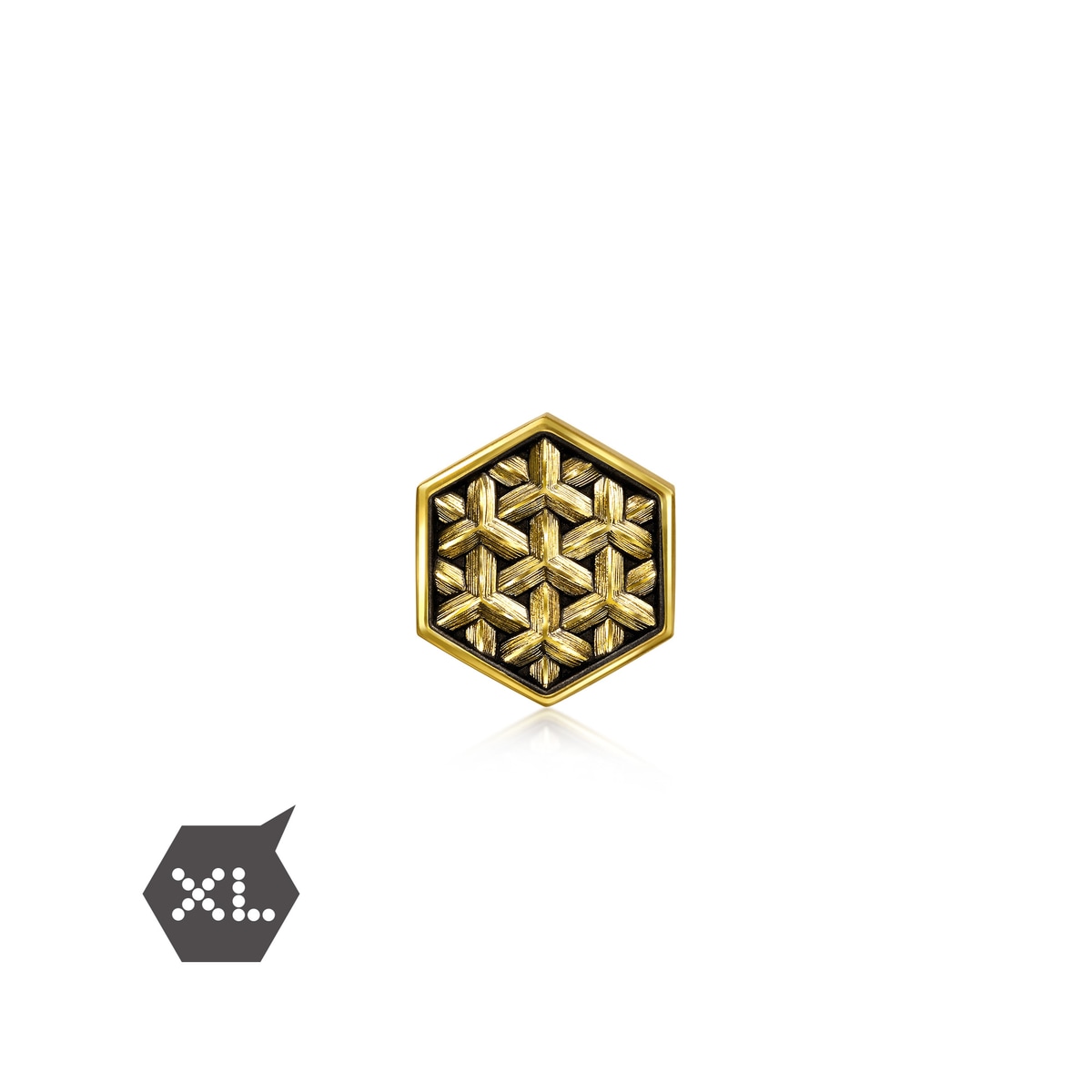 周生生足金飾品靈感源自古代武將鎧甲上的「鎖子紋」圖騰,由無數環扣連成持續相連且規整的幾何綫條。運用酷黑工藝匠心淬煉深邃的視覺張力與層次美,於飾品表面加添一份沉穩與堅毅,象徵著力量的凝聚與永續的守護。