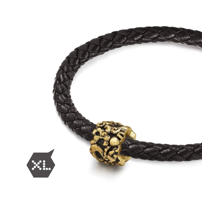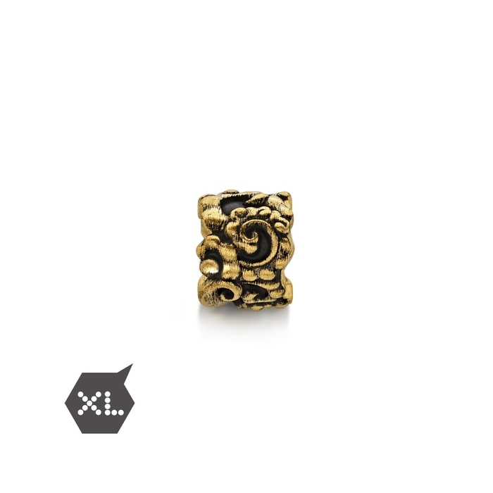周生生足金串珠以傳統「龍紋」為設計靈感,特別結合硬金電鑄及酷黑工藝,呈現傳統龍紋的古樸質感。龍紋造型獨特,代表強大的生命力及感召力,象徵帶來力量與幸運,別具個性,時尚型格。