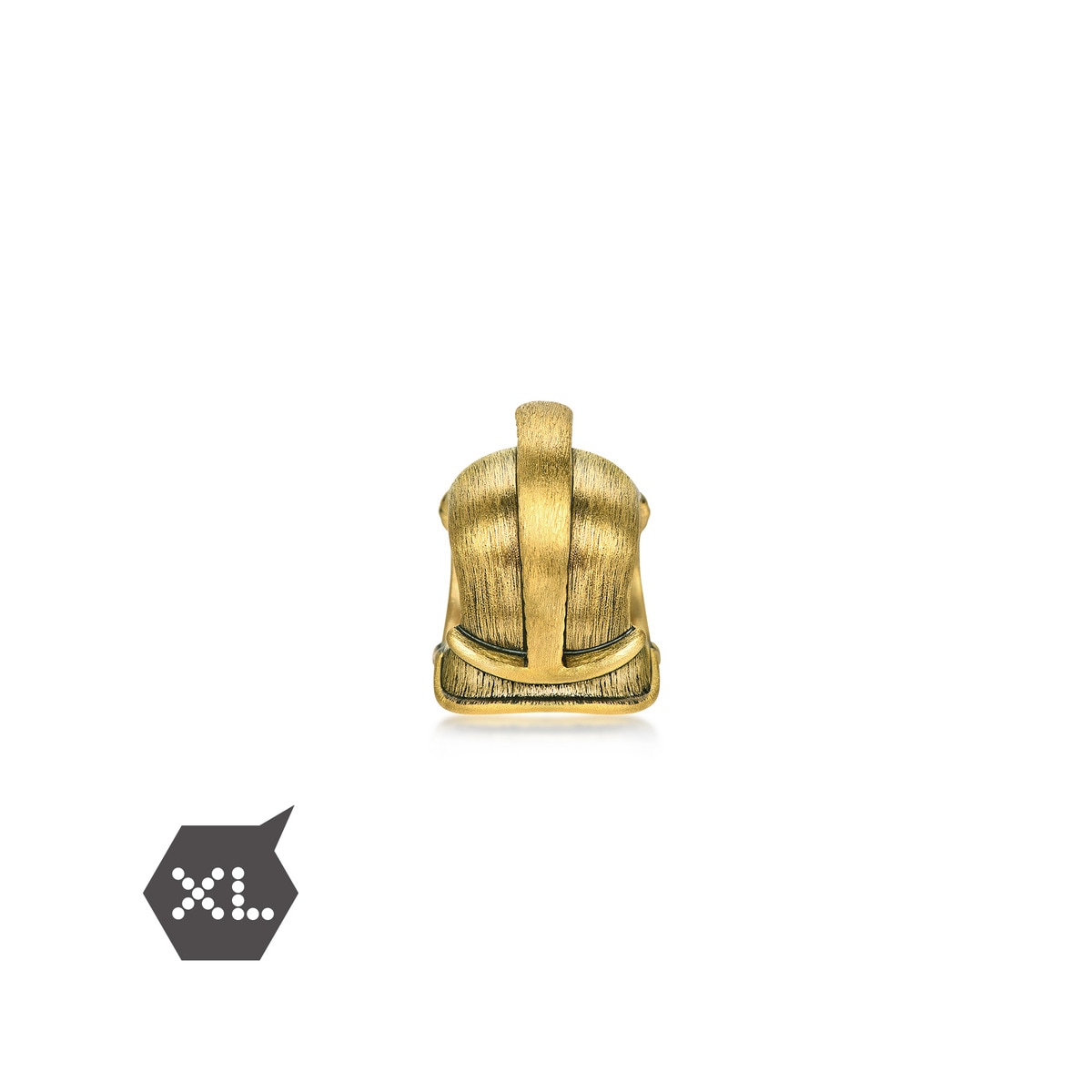 黃金戰神串飾,以希臘神話中十二主神之一阿雷斯 (Ares) 為設計藍本,阿雷斯是戰神,因此頭盔亦代表了力量、權力與威武。珠寶工匠透過金屬電鍍工藝,為串飾刻畫黑線,令外觀更具質感,型格立體。