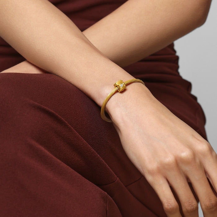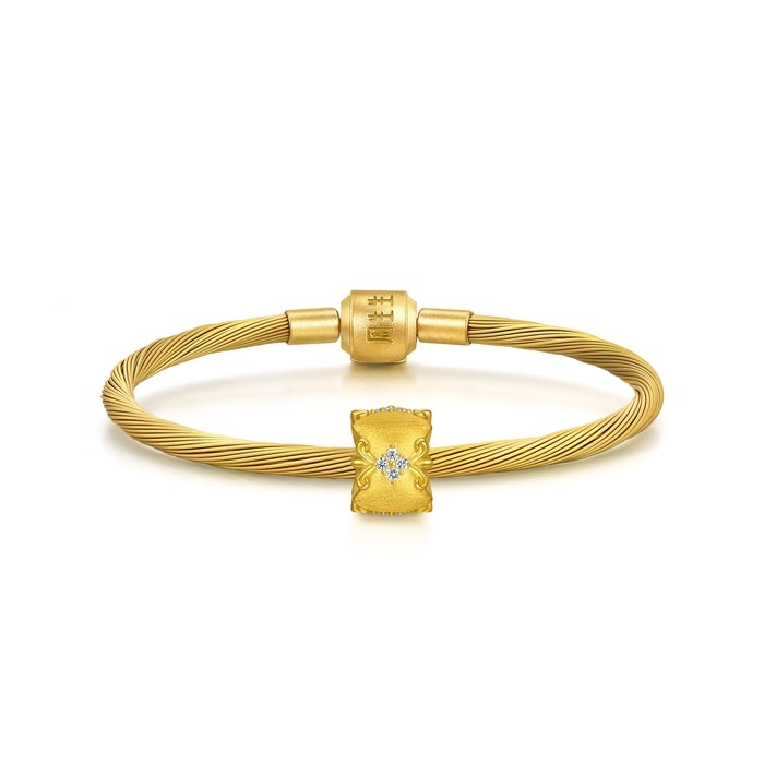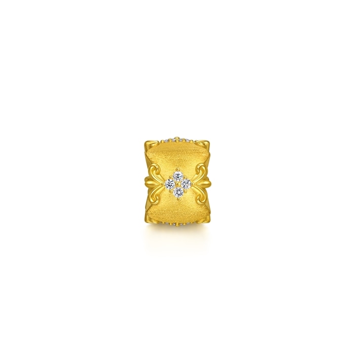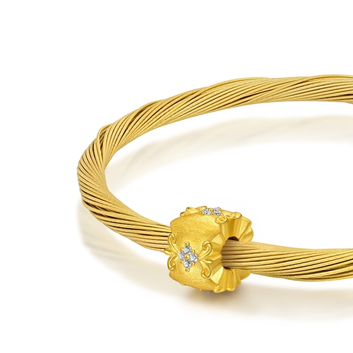周生生足金串珠采用復古鳶尾花設計風格,以卓越硬金電鑄工藝及精緻勾絲工藝精雕出金屬紋理,傾注時間以人手打造黃金細緻質感,鏤空圖案別出心裁。精鑲美鑽點綴,高貴典雅,賦予滿滿復古感。