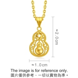 周生生足金吊墜以葫蘆為設計元素,採用卓越硬金電鑄工藝,巧以通花造型勾勒外部輪廓,中間立體葫蘆可作旋轉,靈巧生動。葫蘆寓意福祿雙全、招財納福,轉來延綿不斷的福氣。精緻小巧,更可與其他吊墜款式組合疊戴。