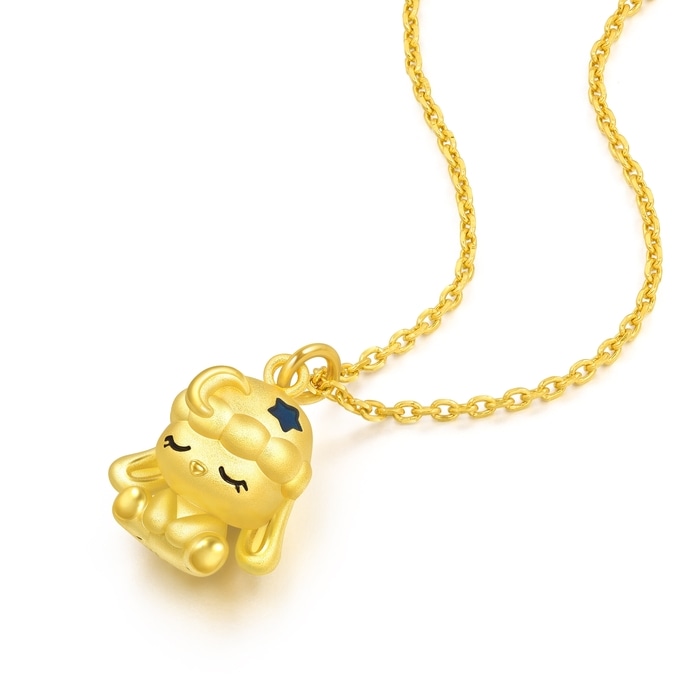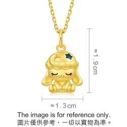 足金吊墜以小兔為設計造型,特別糅合彩繪塗層,細膩勾勒星星與月亮元素,小兔於夜空中沉沉熟睡,表情可愛治癒,充滿童趣同時不失時尚,洋溢夢幻甜美氣息。