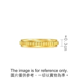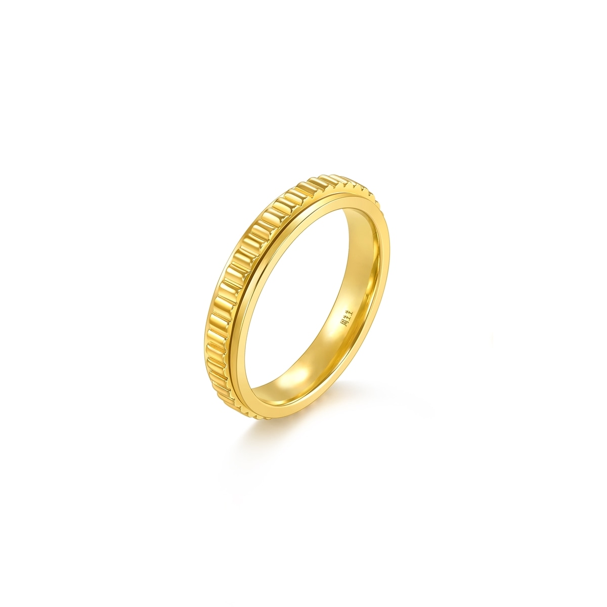 周生生流光系列黃金戒指,採用卓越黃金工藝,大大提升黃金硬度,以齒輪為設計項目,表面呈幾何切割高光亮面,戒軸能自由轉動,如同齒輪轉動,時間不斷輪回,寓意隨心而活便能如金子般閃閃發光, 自信美麗,好運自然來。