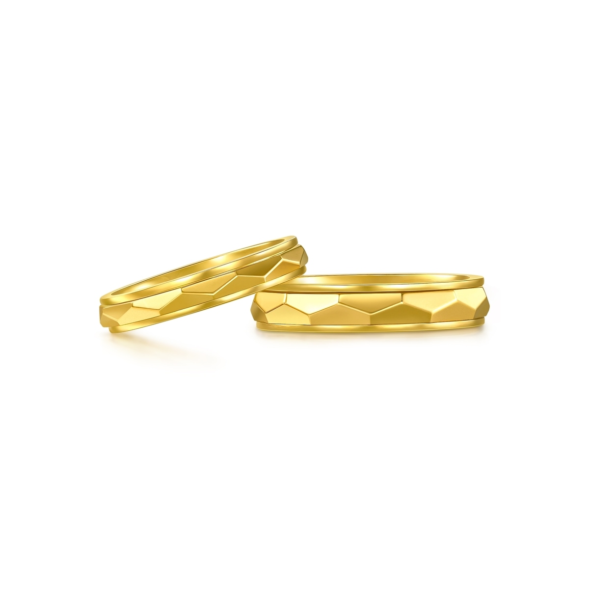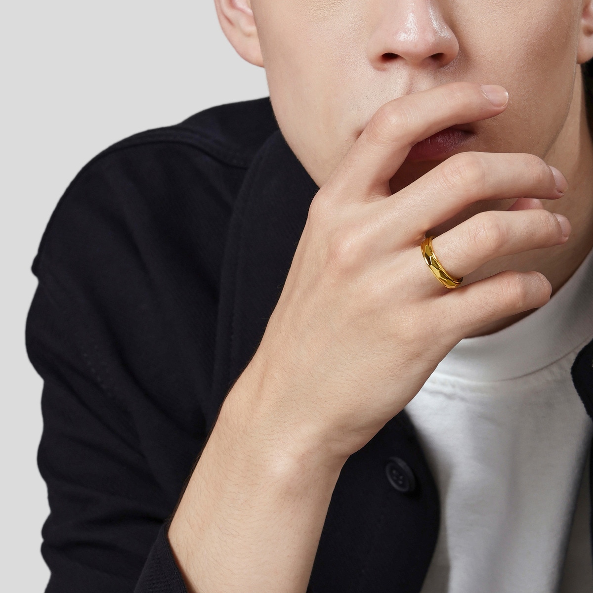周生生流光系列黃金戒指,採用卓越黃金工藝,大大提升黃金硬度,表面呈現幾何切割高光亮面,戒軸能自由轉動,使在光線下閃耀出動人光芒,寓意隨心而活便能如金子般閃閃發光, 自信美麗,好運自然來。