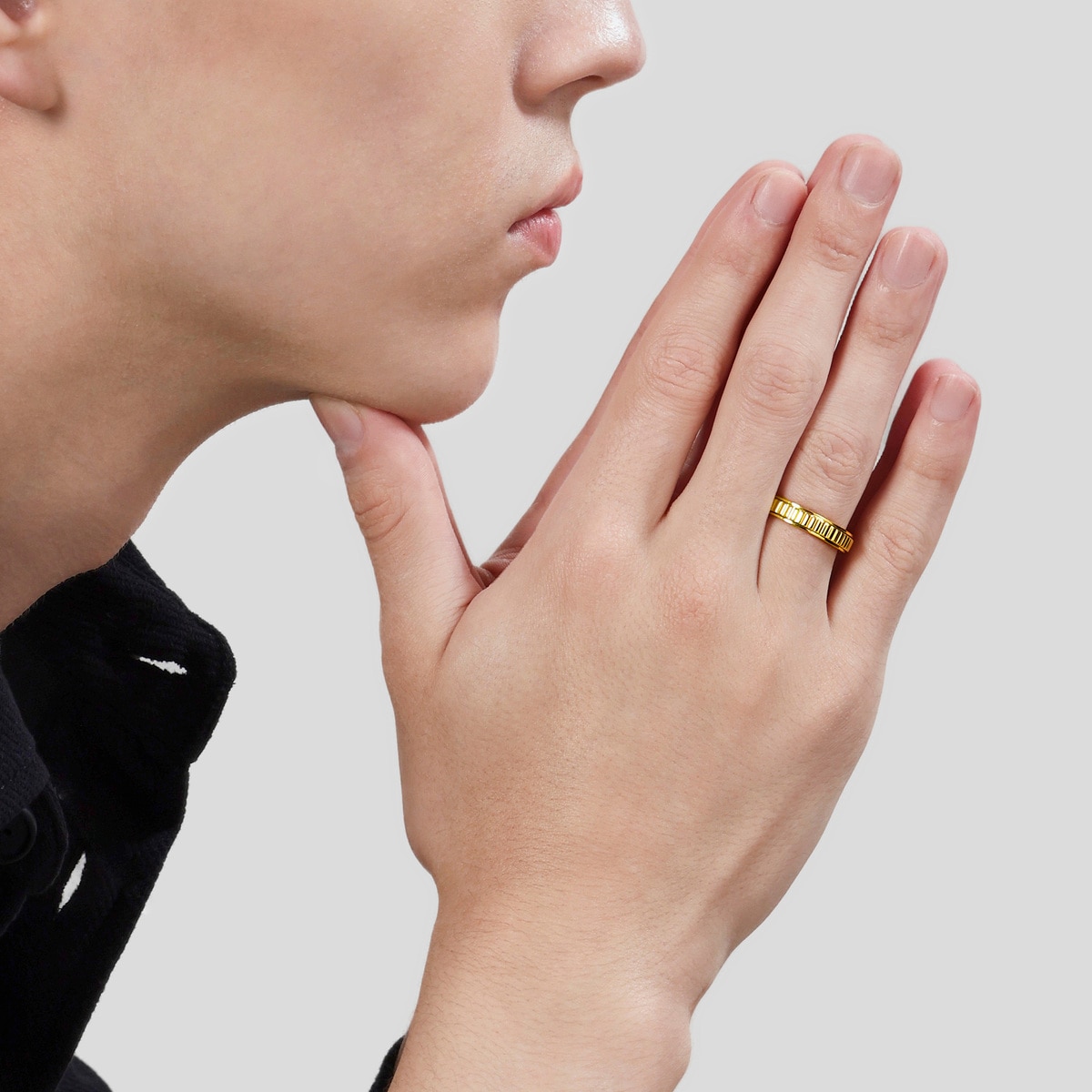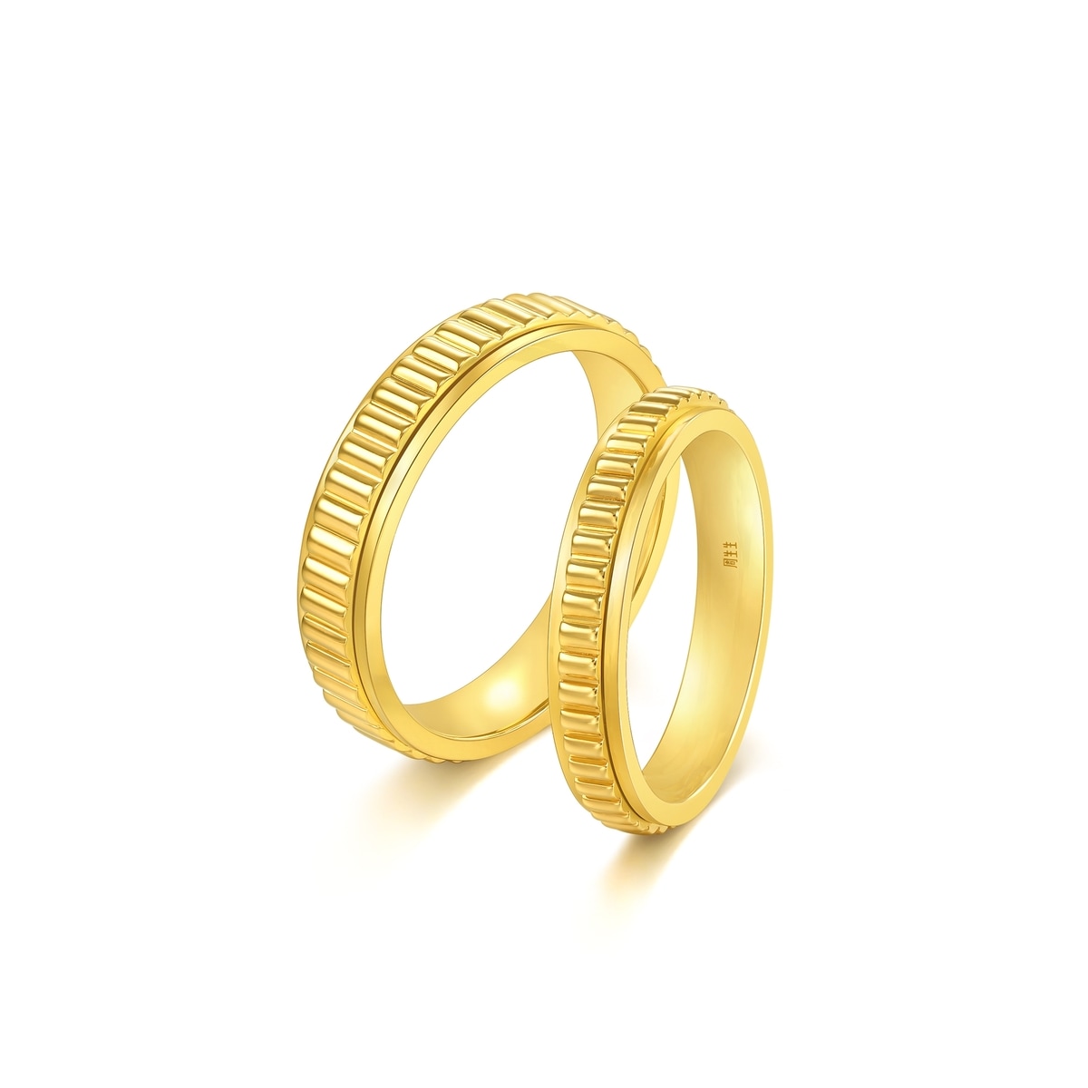Chow Sang Sang's Glow collection gold rings feature exceptional gold craftsmanship that significantly enhances the hardness of the gold. The surface showcases a high-gloss geometric cut, and the ring shank can rotate freely, shining brilliantly under the light. These rings symbolise living freely and shining like gold, bringing confidence, beauty, and good luck naturally.