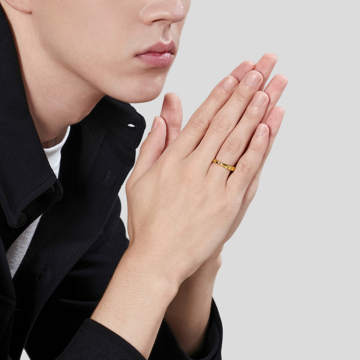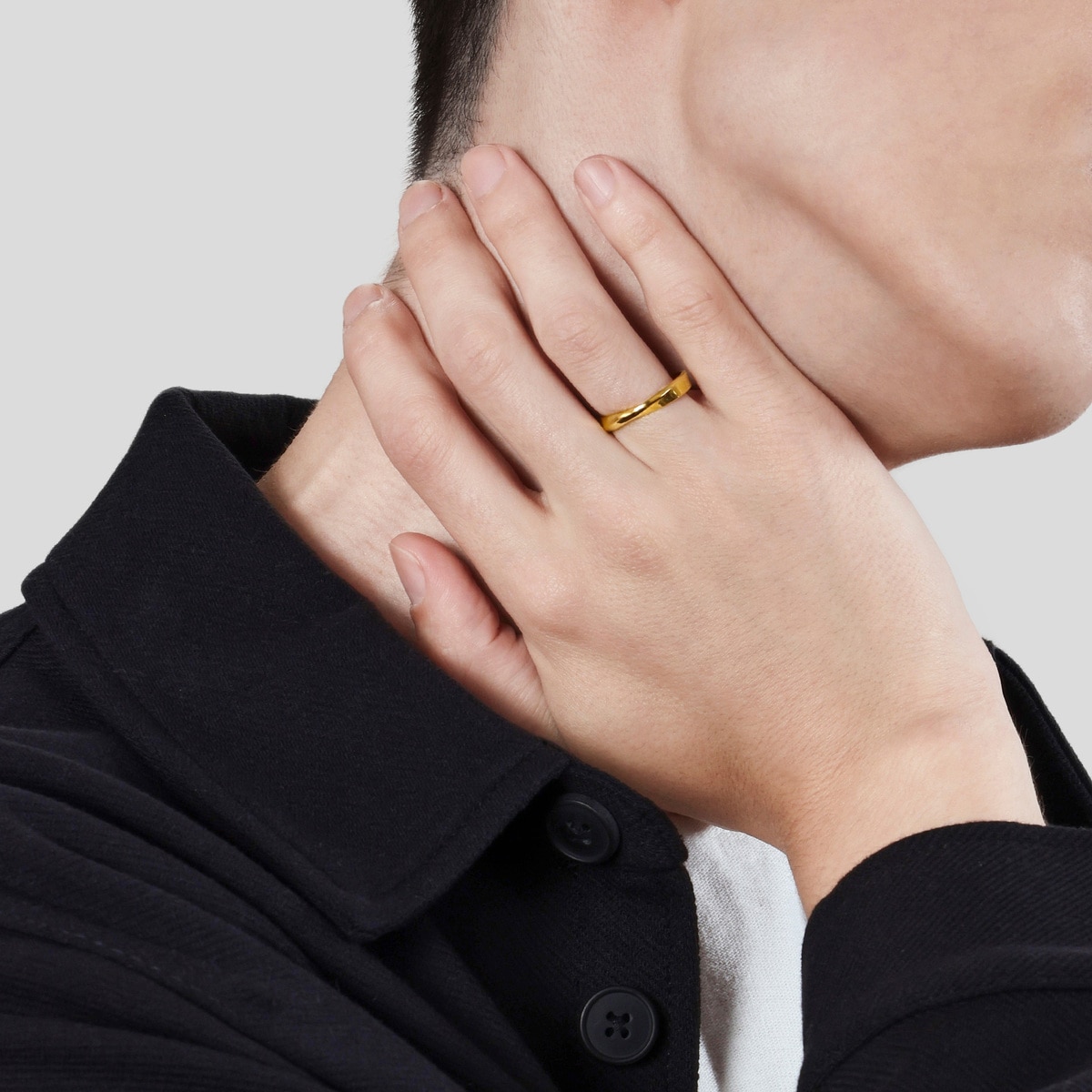周生生足金實心戒指糅合卓越黃金工藝,提升黃金硬度,打造出各式各樣精巧設計。戒指以獨特的「莫比烏斯環」為結構,象徵從一而終、無窮無盡的愛情,線條簡約俐落,以優雅時尚風格傳遞永恆愛意。