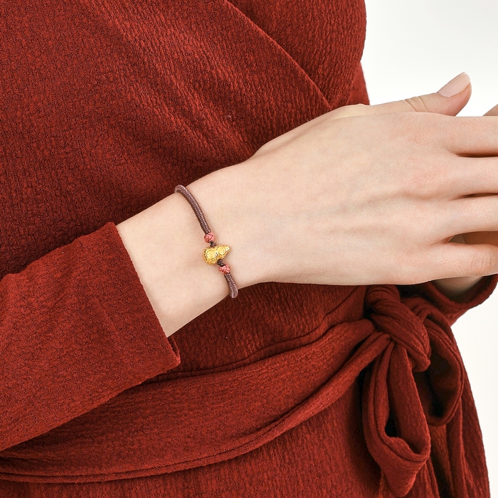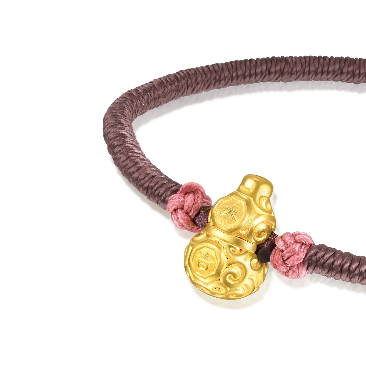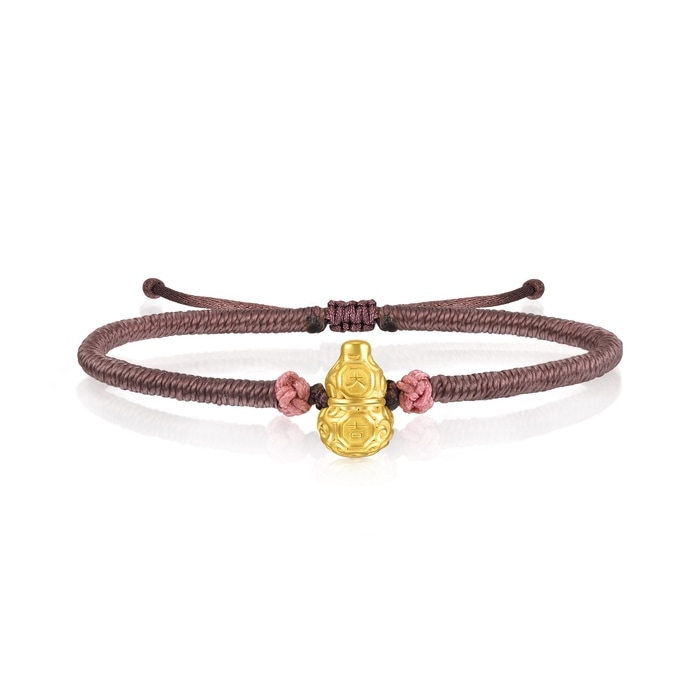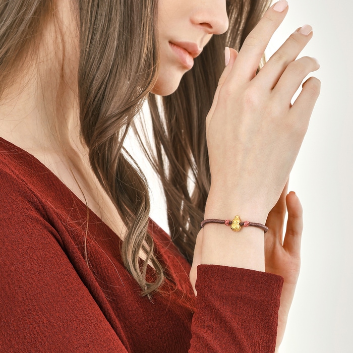 周生生汲取宮廷美學靈感,故宮宮廷文化足金手鍊,以故宮博物院內藏文物「金鏤空葫蘆式香薰」為創作靈感,以硬金電鑄工藝呈現細膩質感,參照香薰的葫蘆形態,正面刻有「大」、「吉」二字,側飾雙蝠銜鏈紋,設計精緻典雅,以當代美學詮釋香薰的古典韻味,更蘊涵「福祿雙全、大吉大利」的美好寓意。
