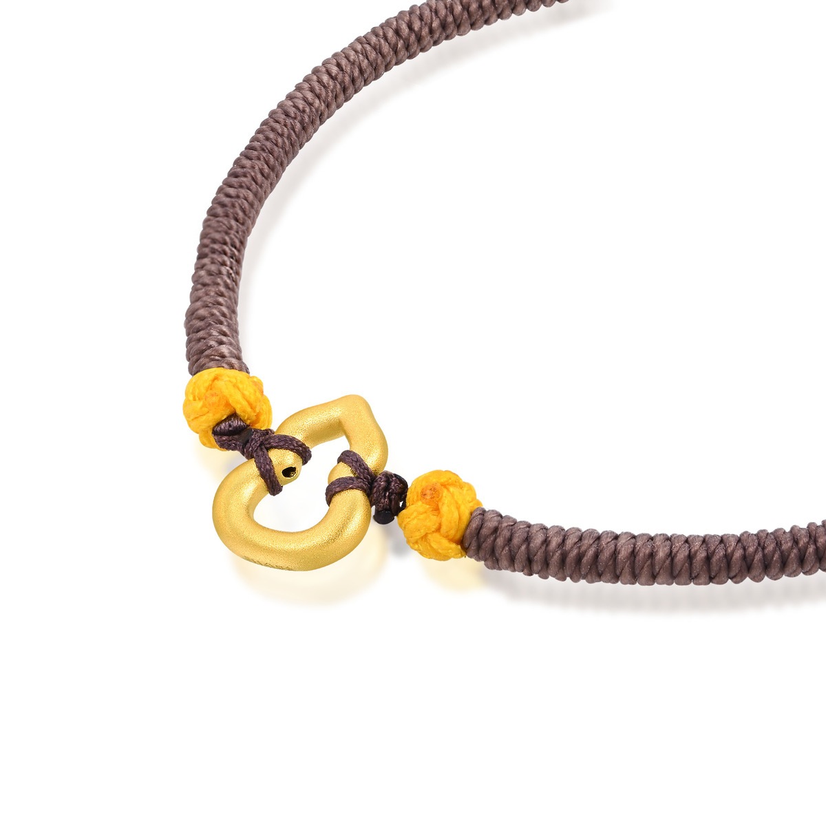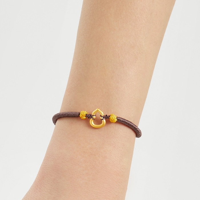 周生生足金葫蘆手繩,以硬金電鑄打造,簡約線條勾勒出葫蘆形狀,象徵福祿雙全、福澤綿延,為佩戴者帶來美好祝福。手繩設計時尚簡約,適合日常佩戴。