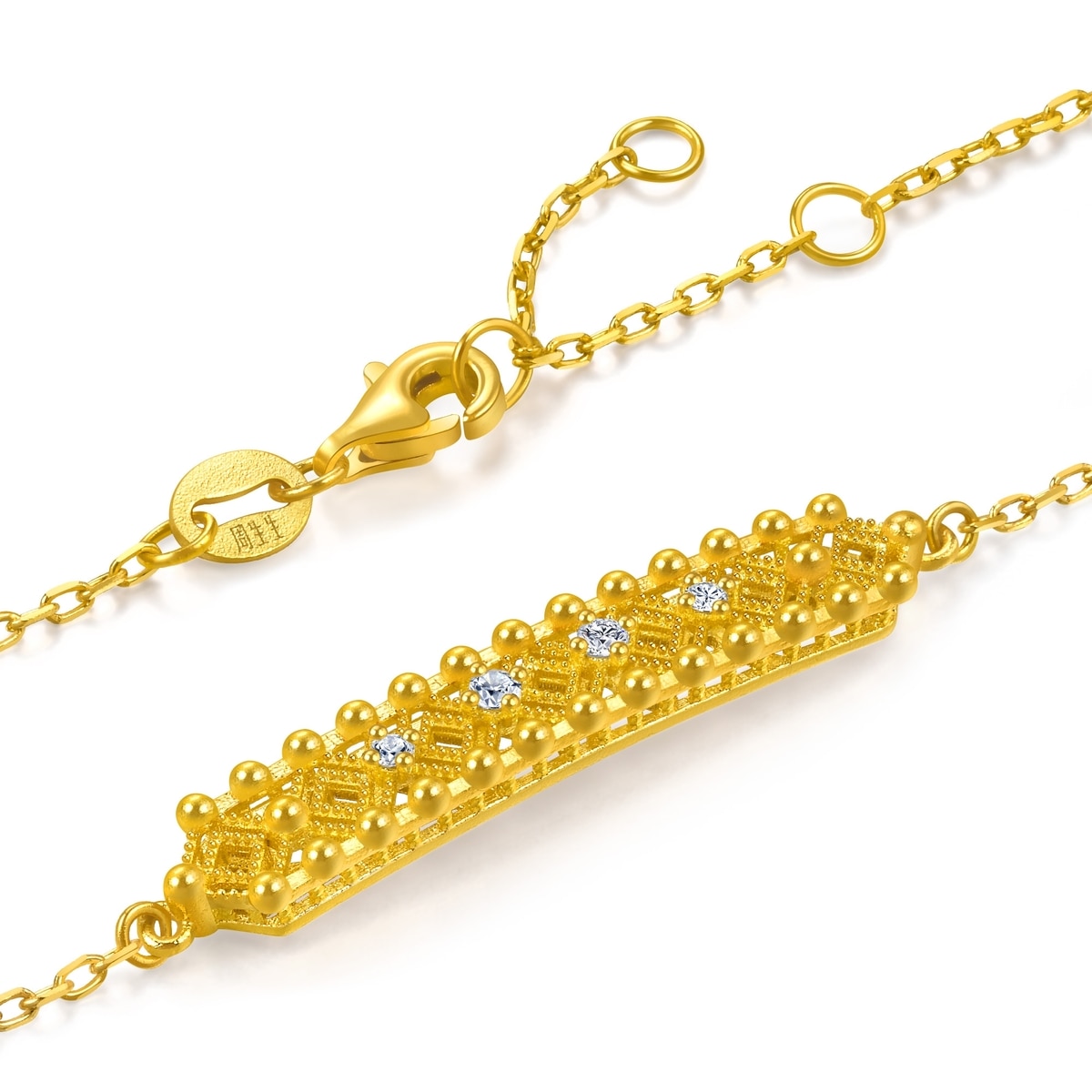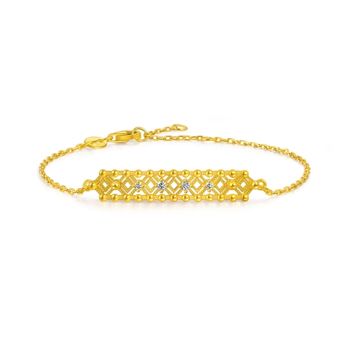 文化祝福 足金鑲嵌鑽石方勝紋手鍊