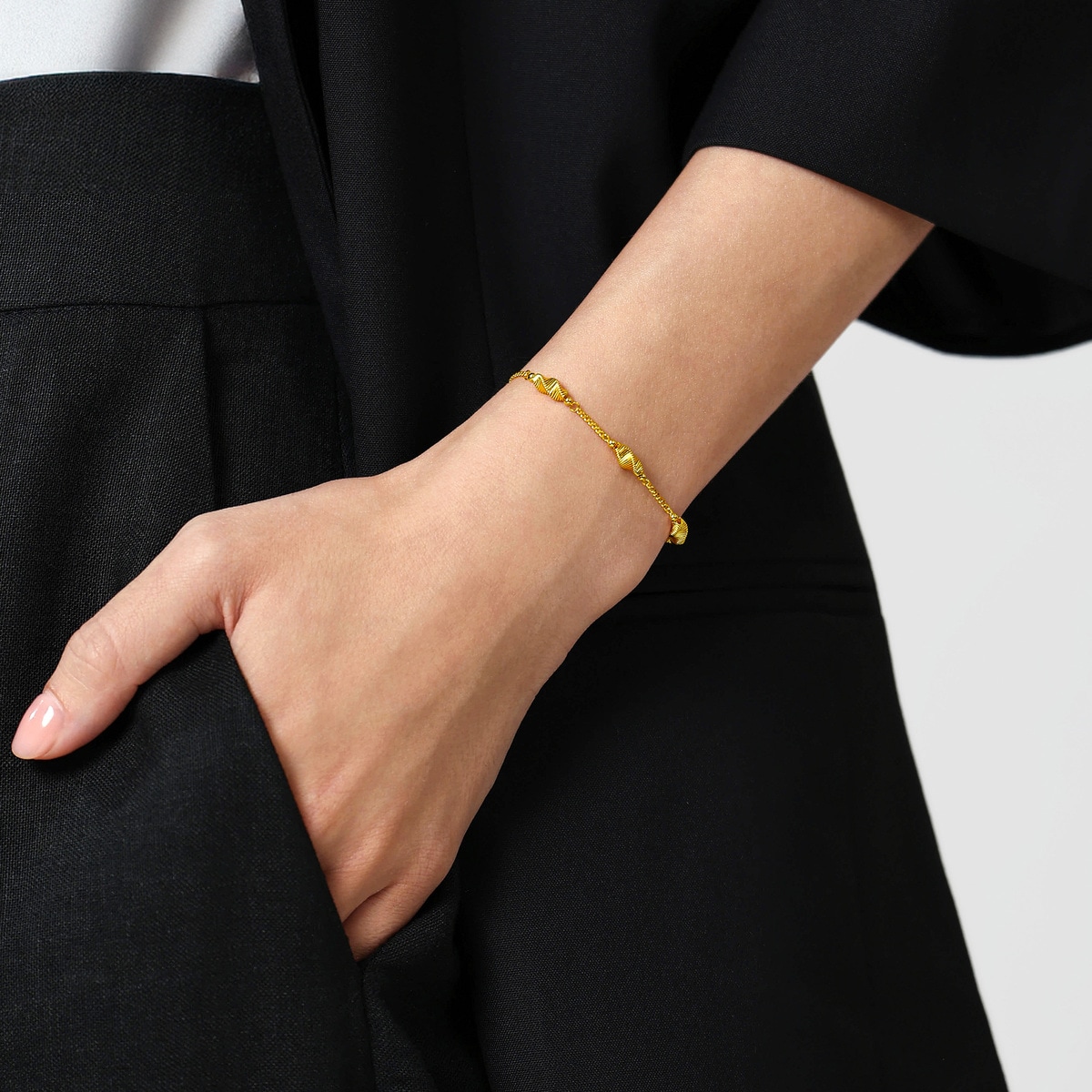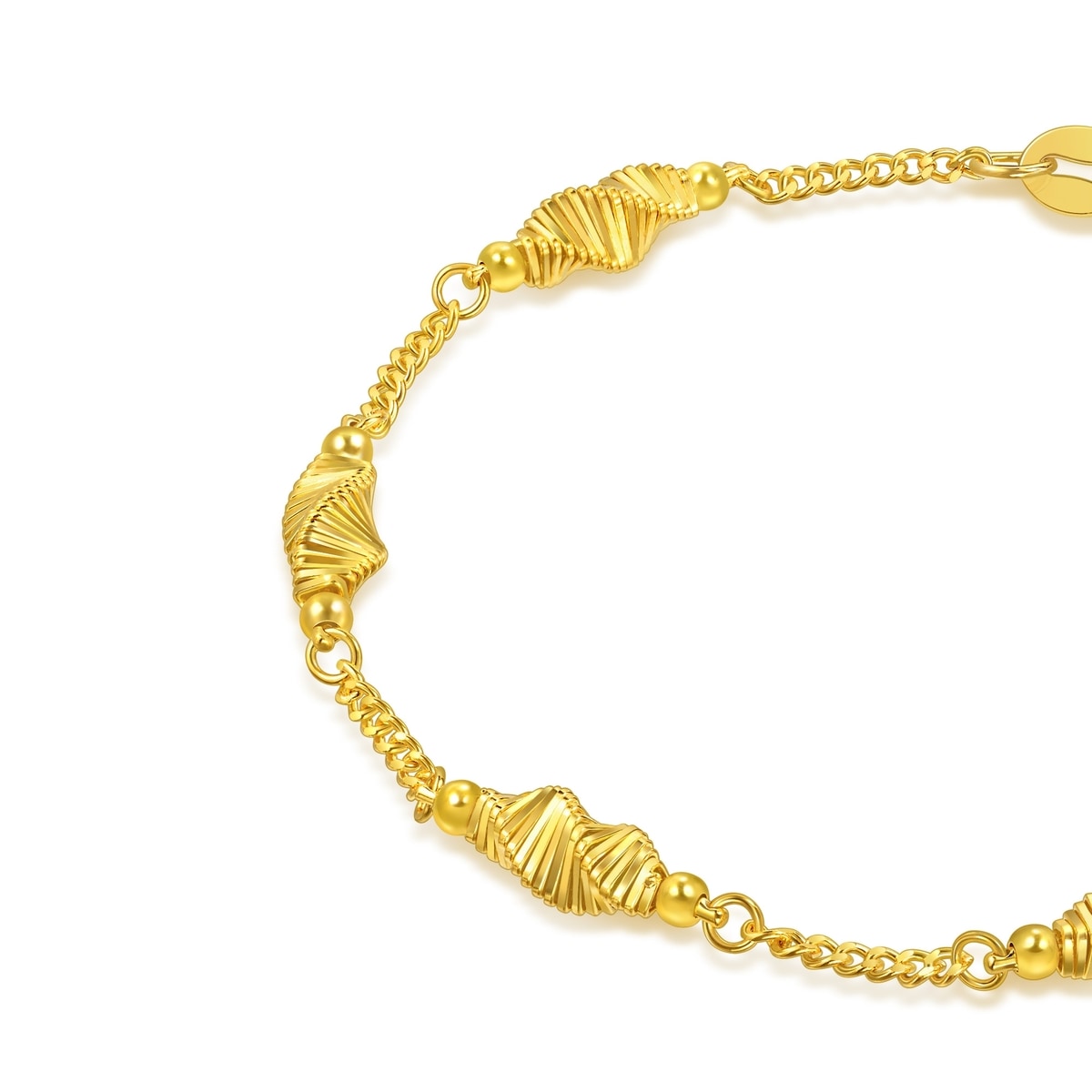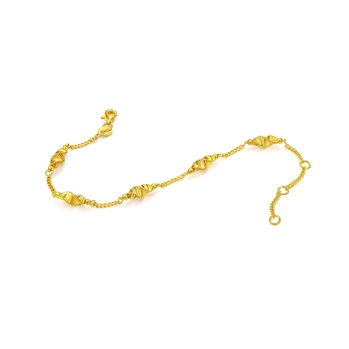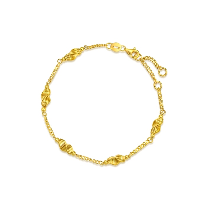 周生生足金手鍊採用卓越黃金工藝,以細緻金絲盤旋縈繞,編織出立體流暢的螺旋形態,優雅時尚,適合配搭各種日常造型。
