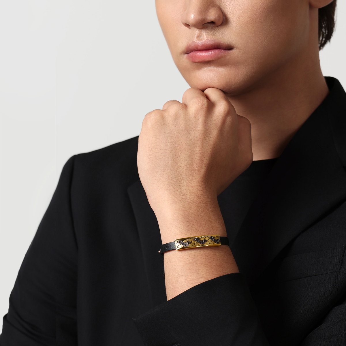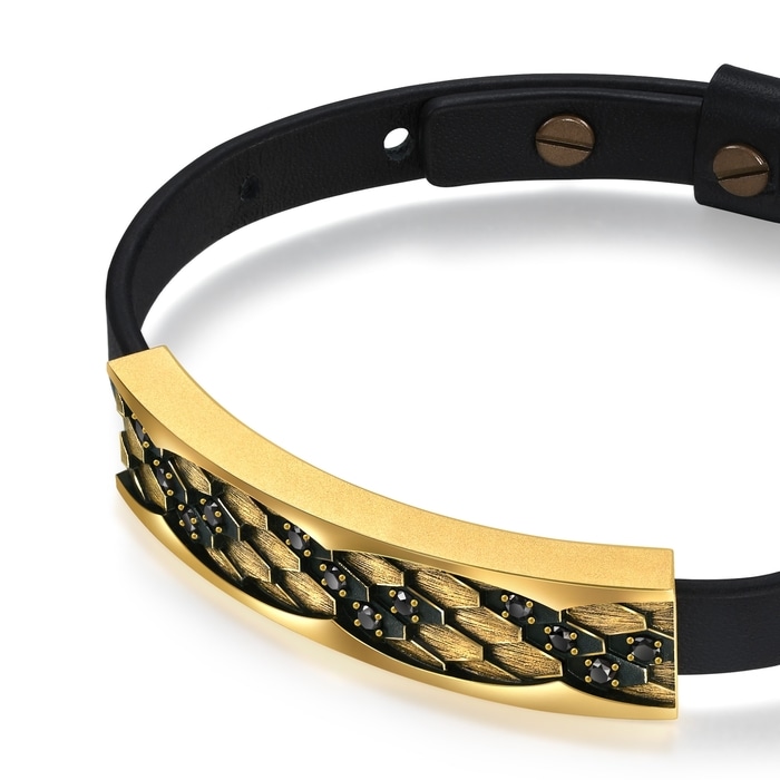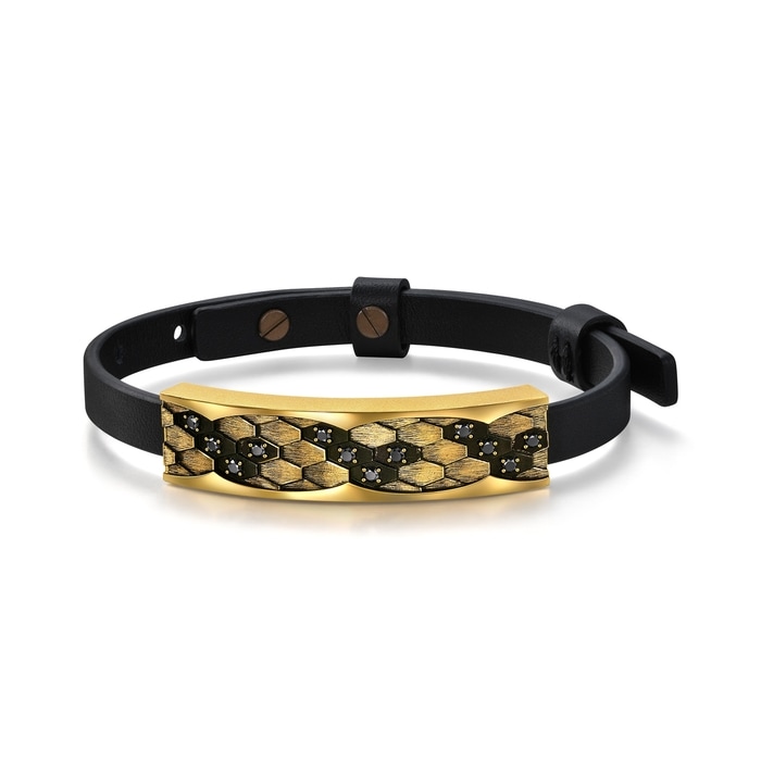周生生足金手鍊以「蛇紋」為設計靈感,特別結合酷黑工藝及卓越黃金工藝,錯落有致地鑲嵌閃耀黑鑽,呈現出蛇鱗的立體層次與線條,質感細緻,造型別具個性。蛇是神話傳說中的重要標誌,是象徵吉慶延年之物,被譽為吉祥與尊貴的化身。