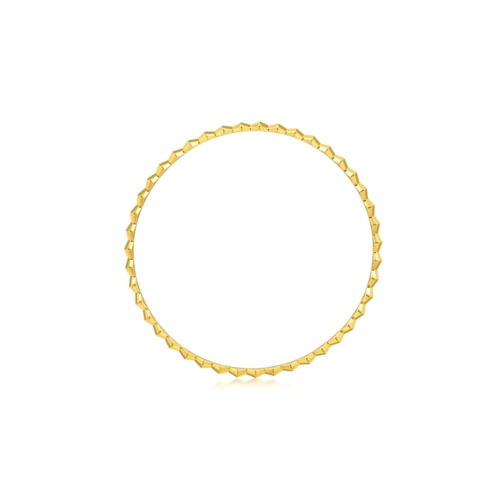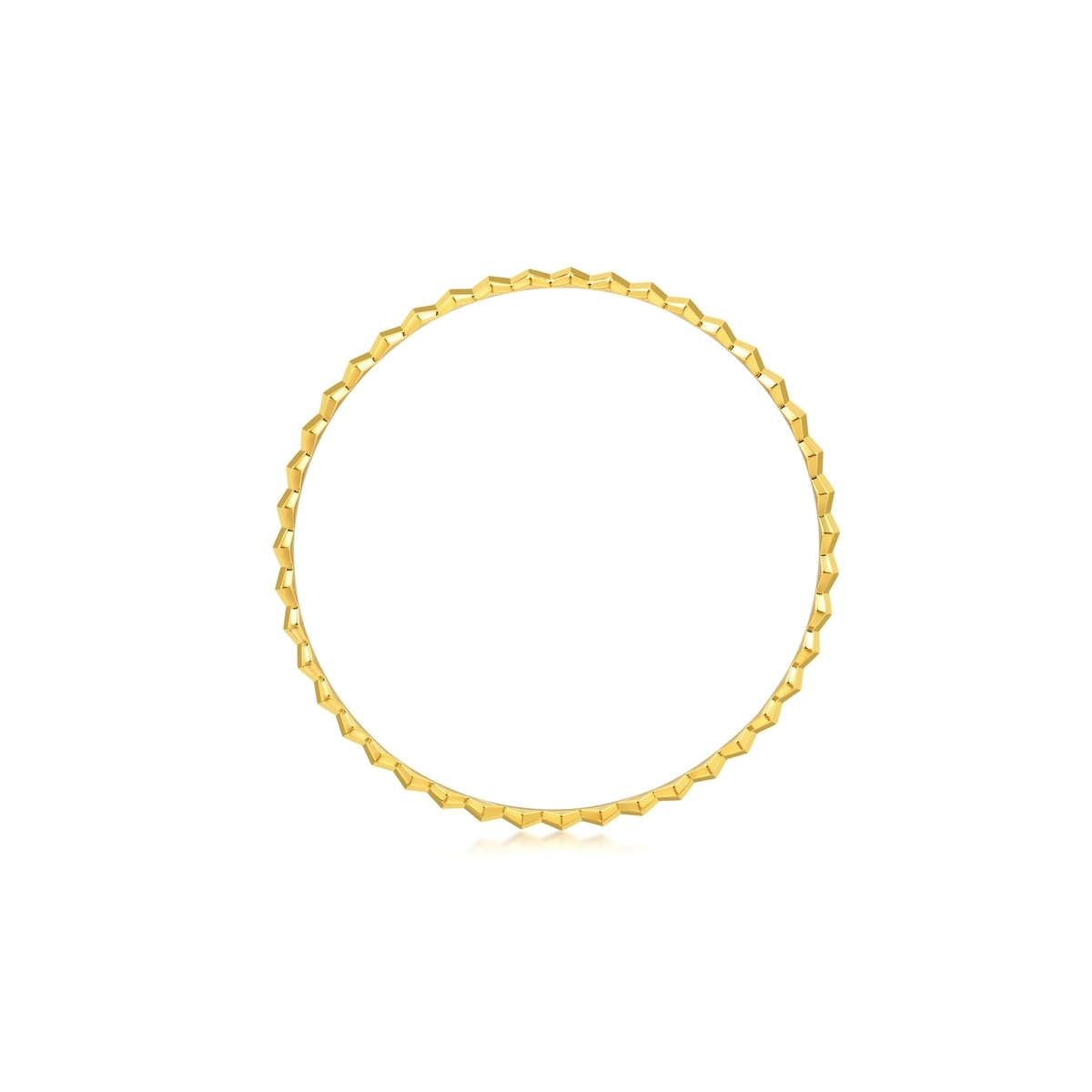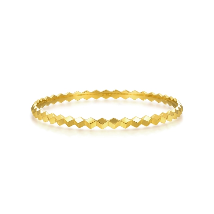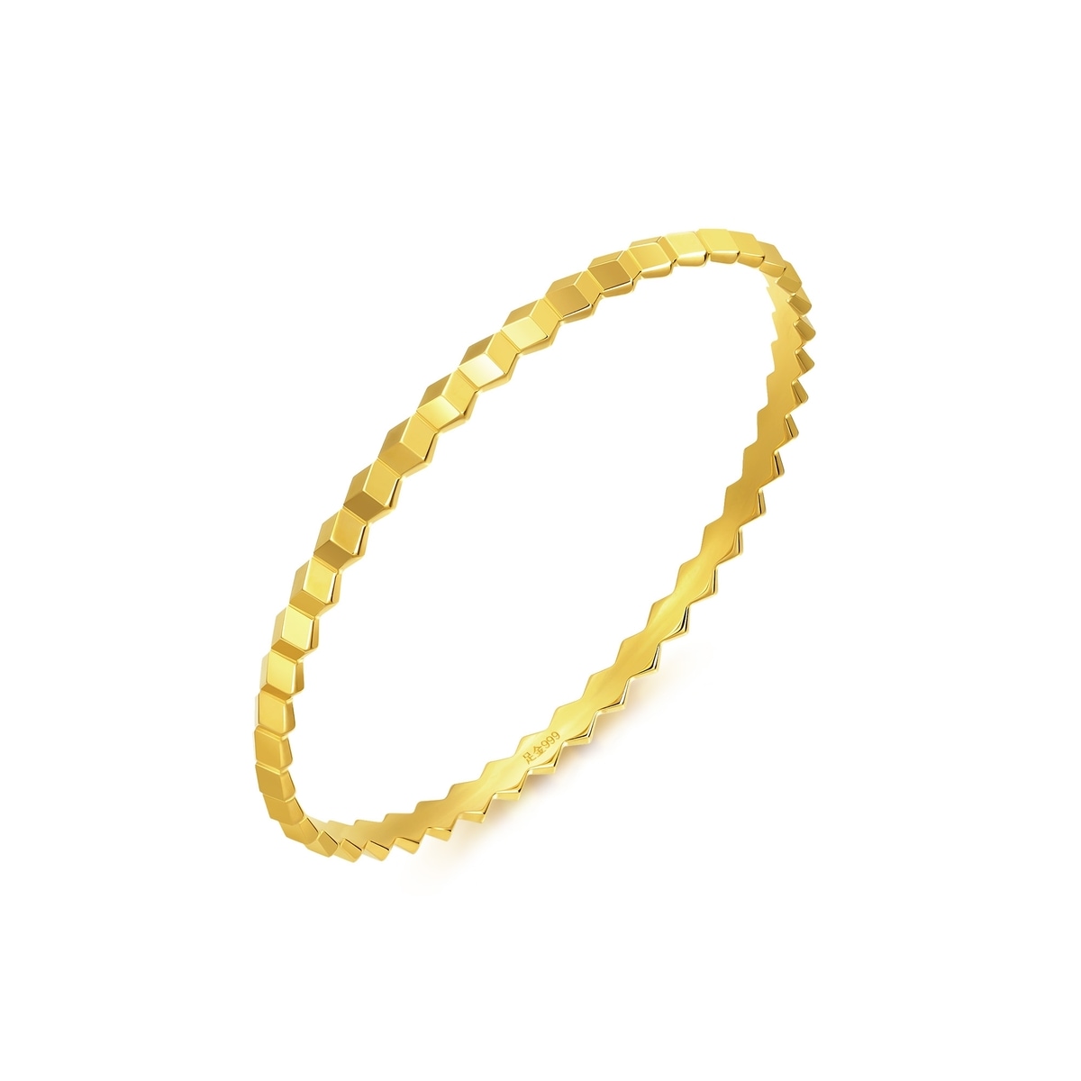 周生生足金實心手鐲糅合創新5G多元黃金工藝,提升黃金硬度,打造出各式各樣精巧設計。手鐲設計以六角形環環相扣,拼湊出蜂巢造型,清新簡約,輕易打造優雅時尚風格。