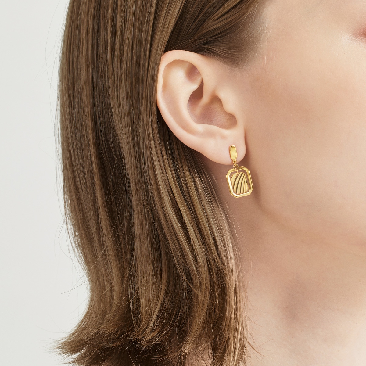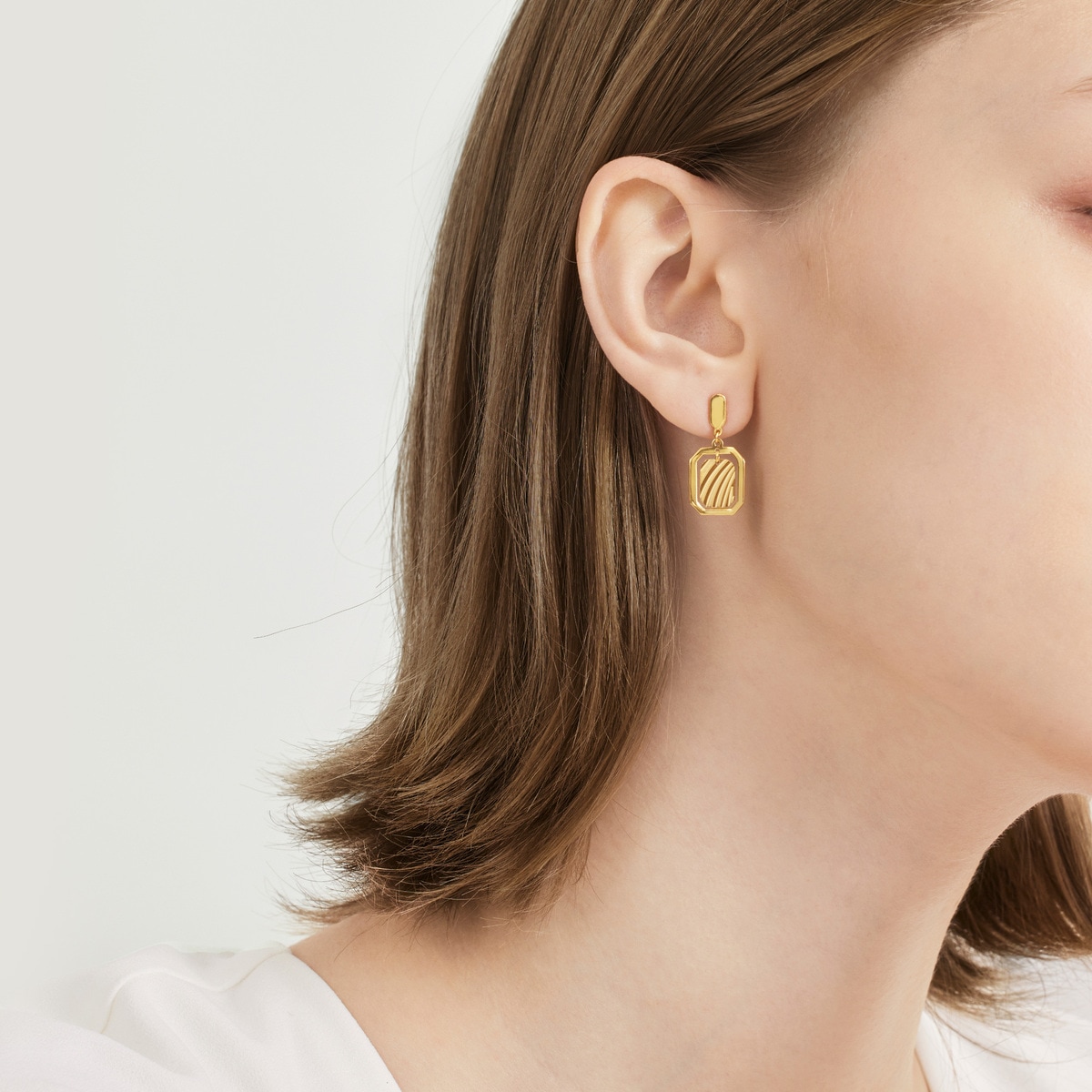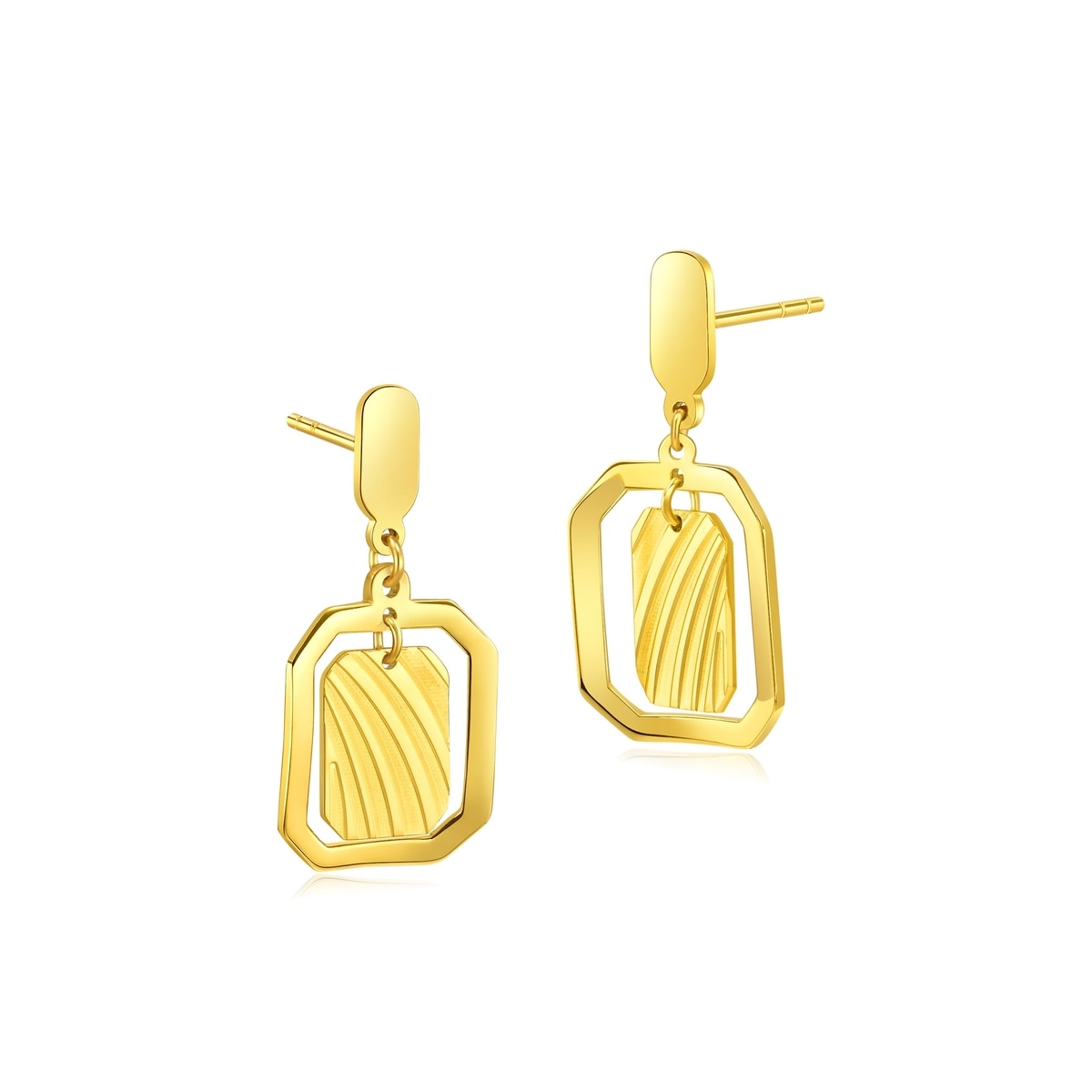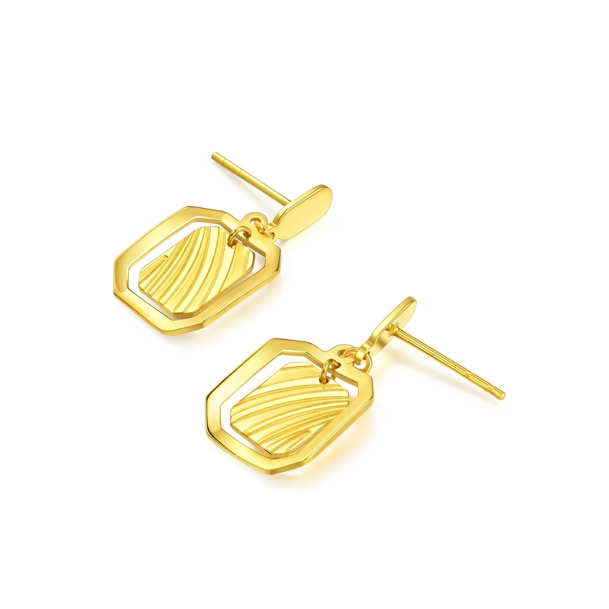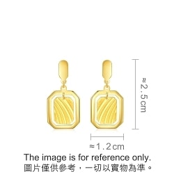 周生生足金耳環採用創新5G黃金技術,令黃金硬度大大提升,配以多元黃金工藝,質感精緻細膩。長方八角形吊牌結合立體飾紋,外襯光面金框,層次豐富同時充滿動感,將優雅時尚風格融入日常配搭。