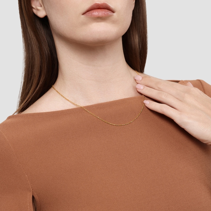 周生生足金頸鍊設計簡約大方、經典百搭,無論是單獨佩戴,或配搭各種吊墜造型,輕易打造時尚風格。