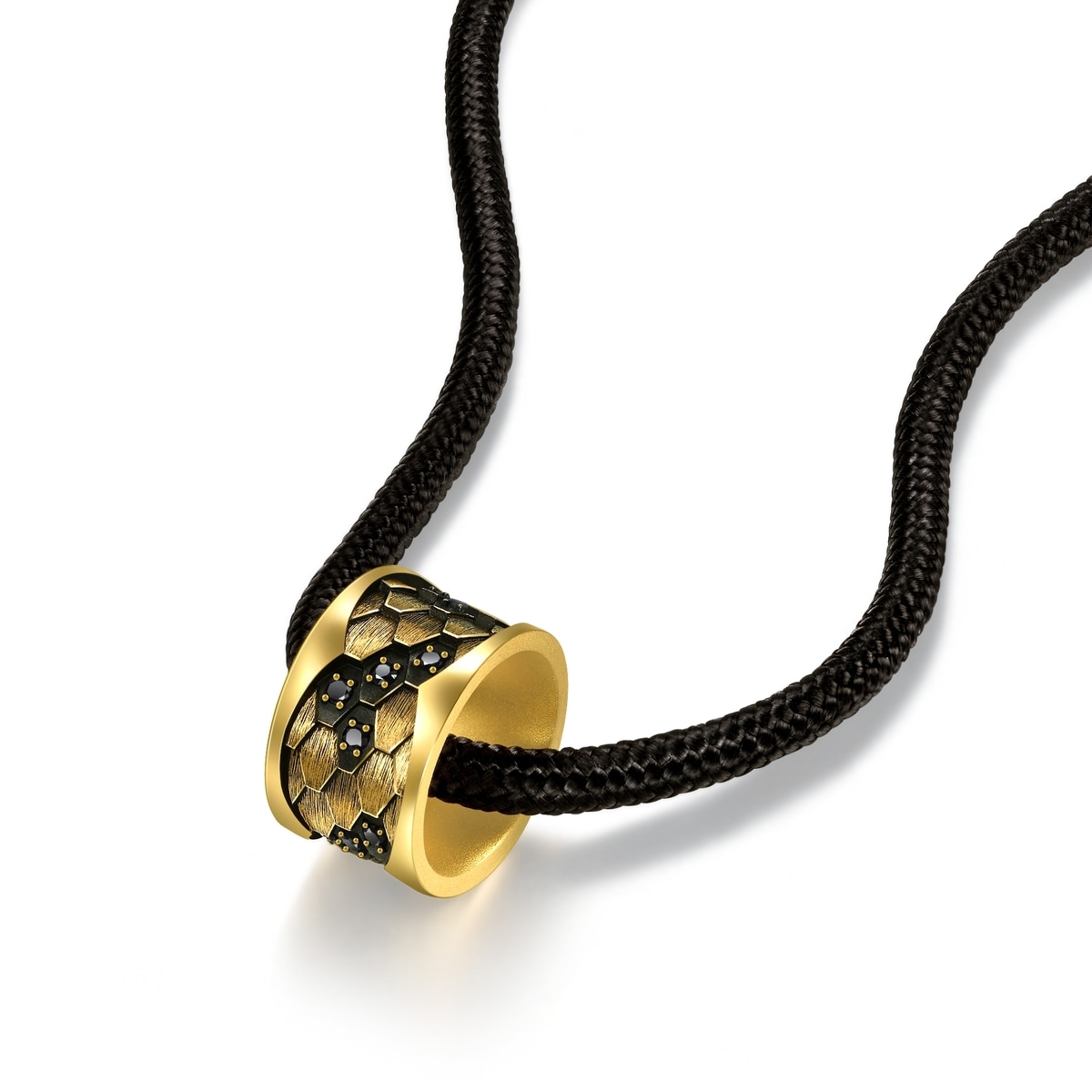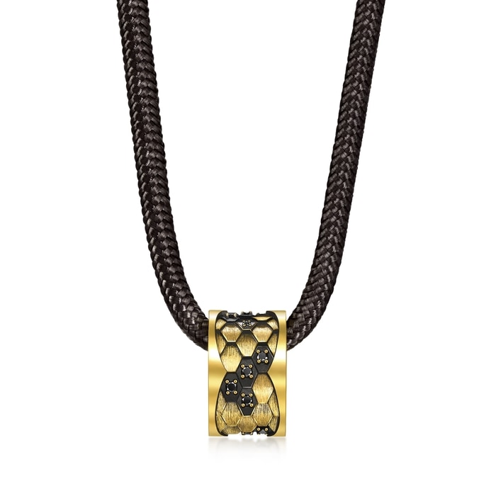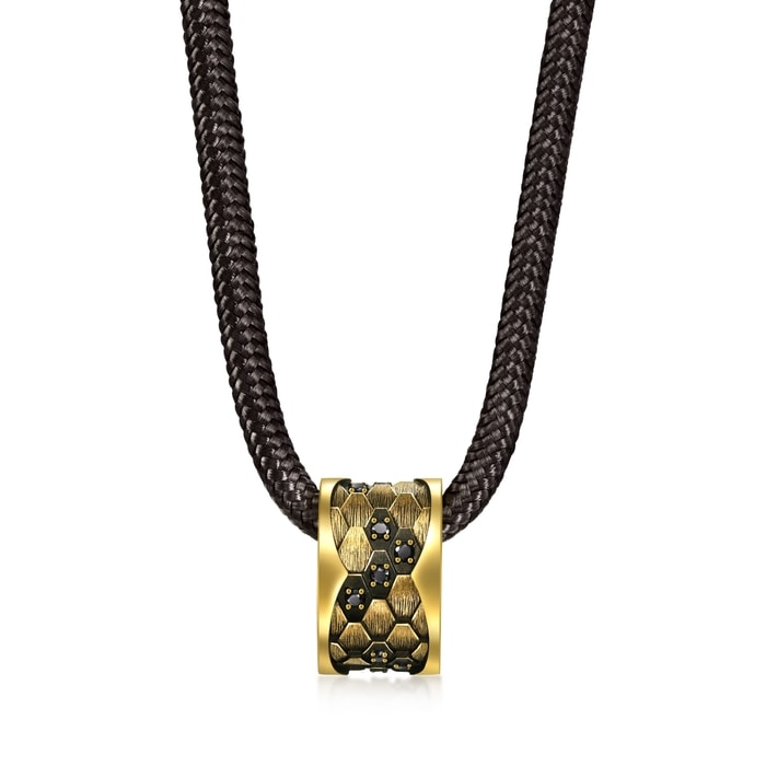 周生生足金頸鍊以「蛇紋」為設計靈感,特別結合酷黑工藝及卓越黃金工藝,錯落有致地鑲嵌閃耀黑鑽,呈現出蛇鱗的立體層次與線條,質感細緻,造型別具個性。蛇是神話傳說中的重要標誌,是象徵吉慶延年之物,被譽為吉祥與尊貴的化身。