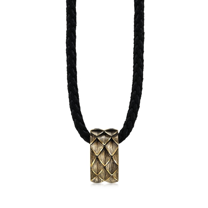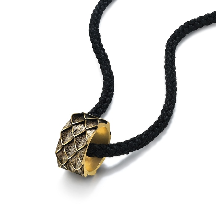 周生生足金頸鍊以中國傳統「龍鱗」為設計靈感,先以酷黑工藝塗上酷黑色,再結合精湛的人手拉絲技術,使鱗片呈現獨一無二且深刻的線條,質感十足、別具個性,具備吉祥與安康的祥瑞寓意,集時尚與祝福於一身。