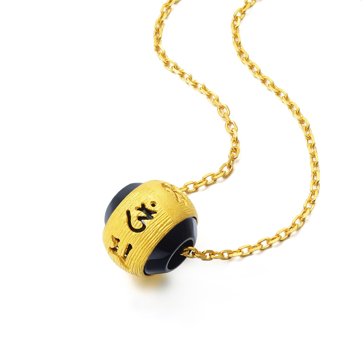 周生生中國大乘佛教源遠流長,豐富了中國傳統文化的內涵。周生生運用卓越的工藝,將六字大明咒經文「唵嘛呢叭咪吽」 概念打造成足金飾品,把經文所包含的平安護身寓意展現在現代感十足的金飾之上,并鑲入高貴玉髓,創造出古樸莊嚴又深具時尚品位的足金玉髓珠。