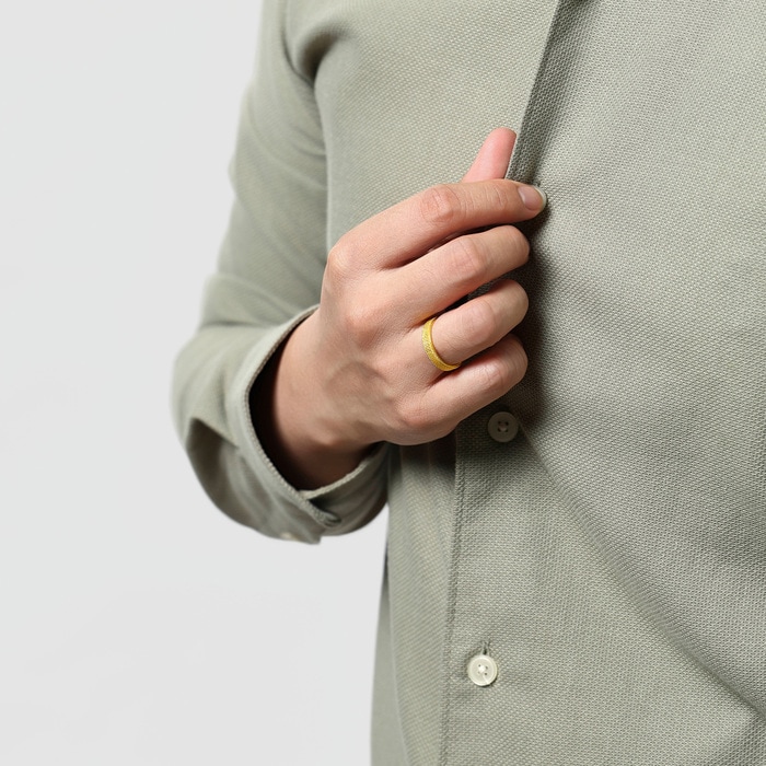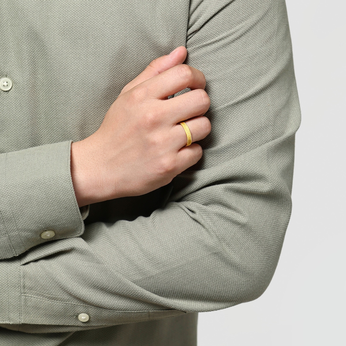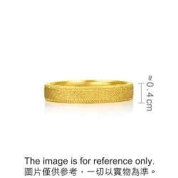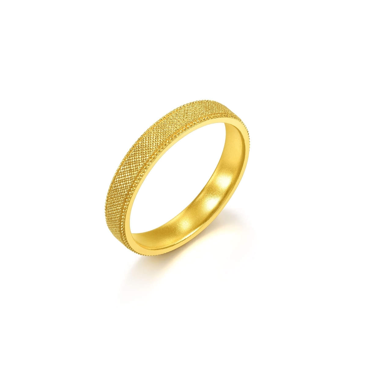 周生生微糖足金戒指,採用卓越黃金工藝,結合3D打印技術,在黃金表面刻畫出獨特的布紋紋理,精緻典雅,極具獨特質感的布紋紋理,線條流暢而細膩,光澤柔和,讓黃金展現出如絲綢般的珠光感。
