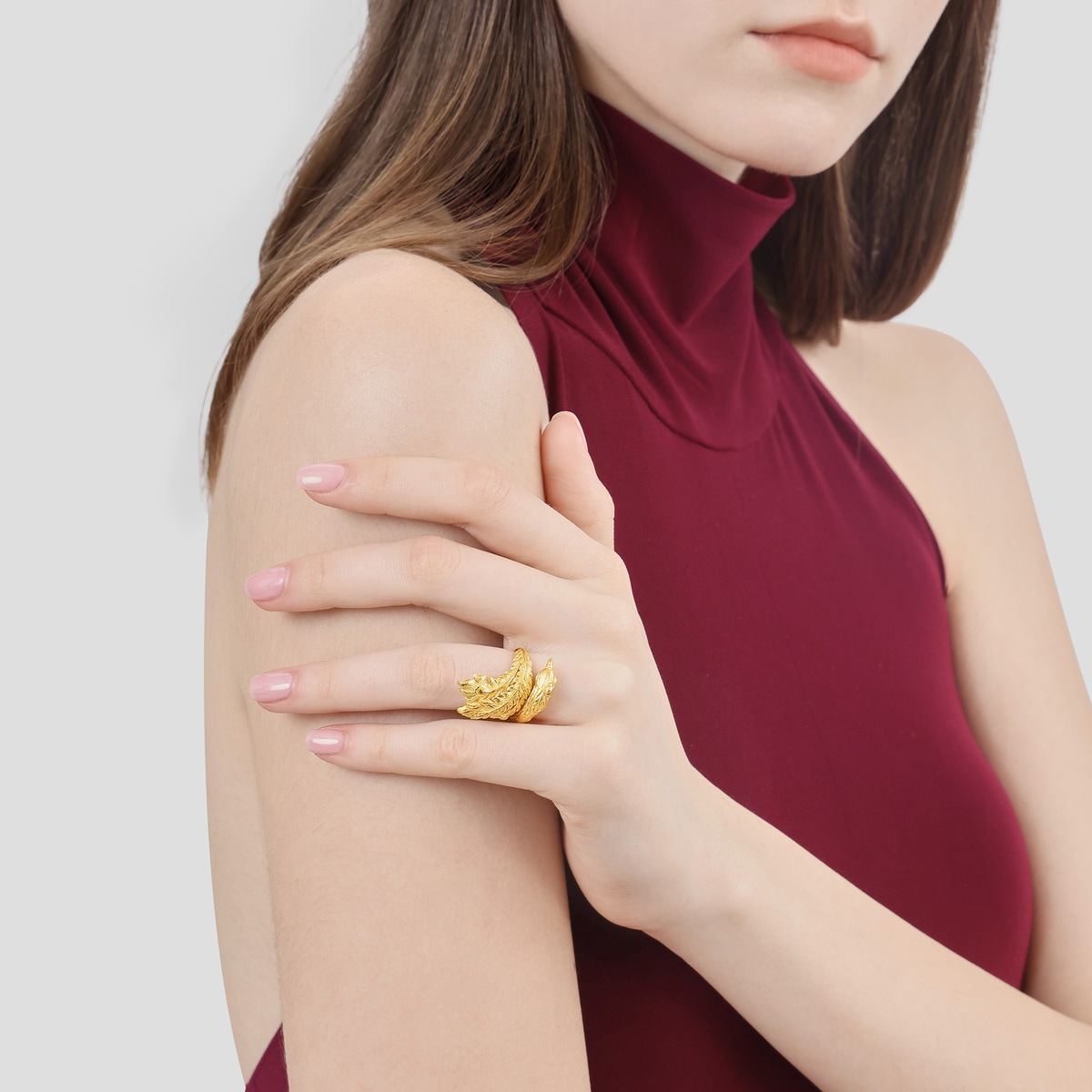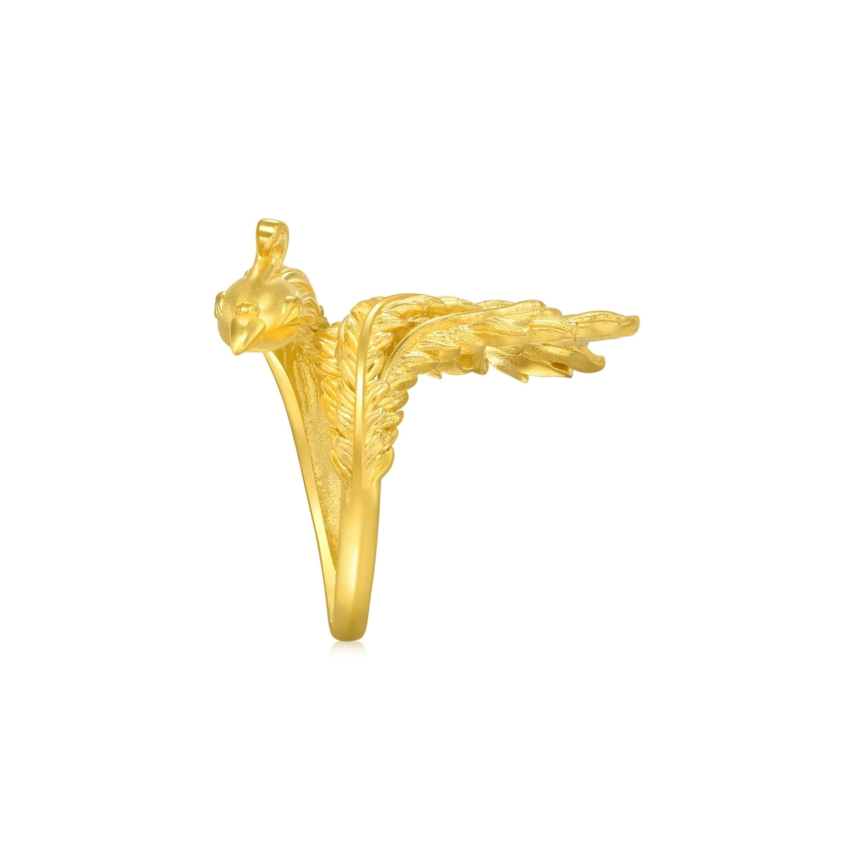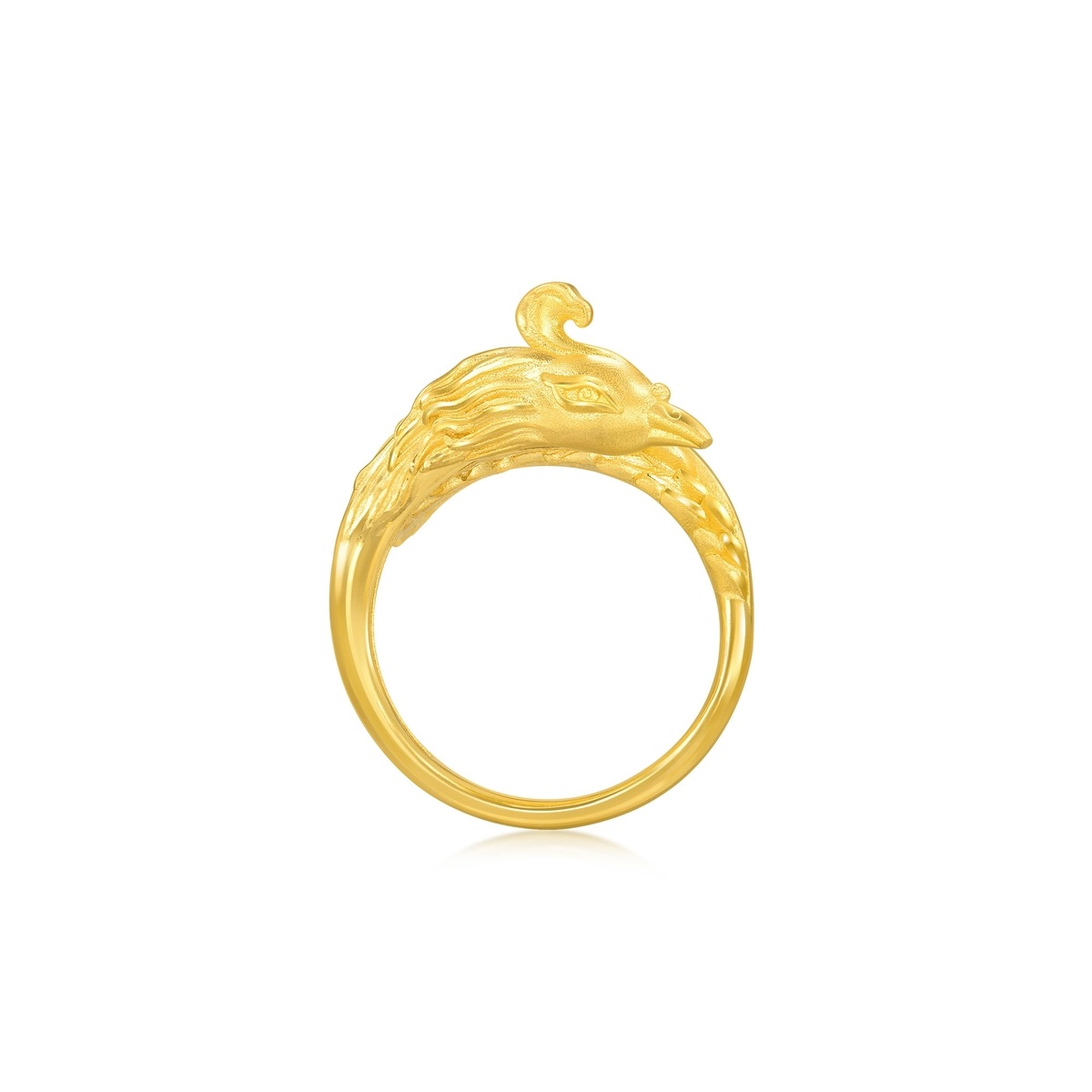 周生生足金鳳戒指,細膩捕捉鳳的優美姿態,造型立體精緻,鳳翎隨之向外延伸,線條流暢華麗、層次分明,盡顯華貴大氣,為新人送上「鸞鳳和鳴、百年好合」的美好祝願。