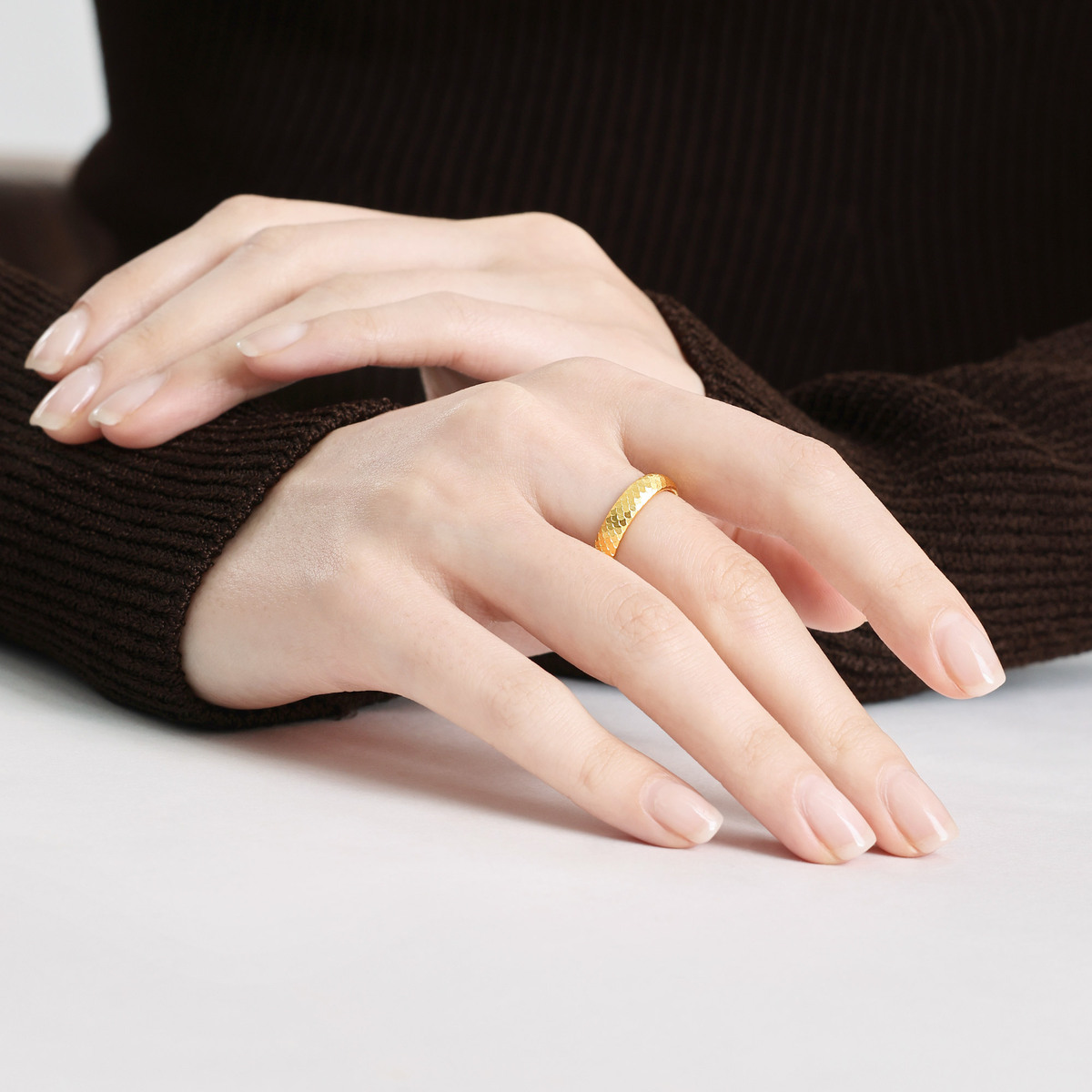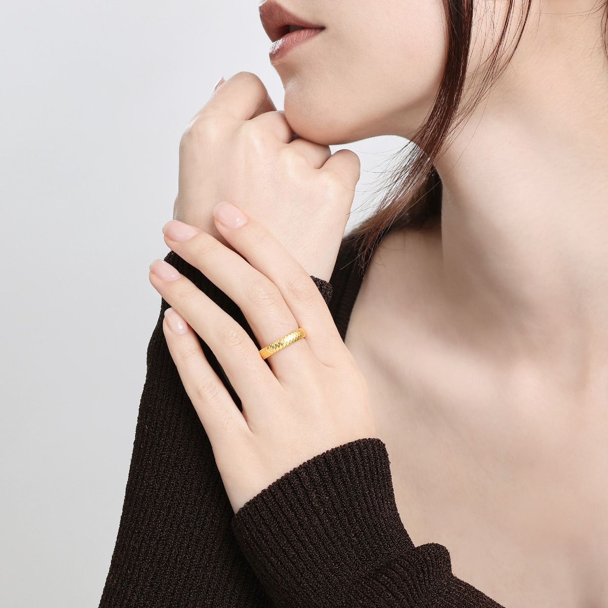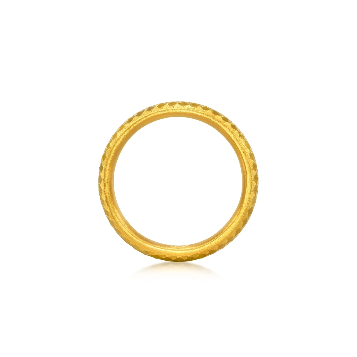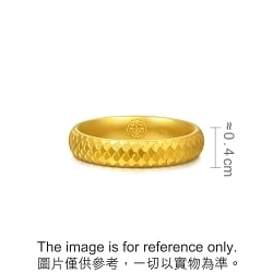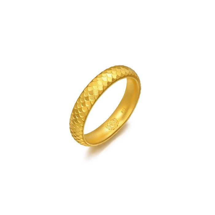 周生生足金戒指凝聚精湛技藝,配合CNC細緻數控精雕切割,塑造出鱗片般排列有序的紋理設計,富有獨特質感。戒指內側特別刻鑄專屬「竹」「蝠」印記,寓意「祝福」如影隨形,福氣滿載。