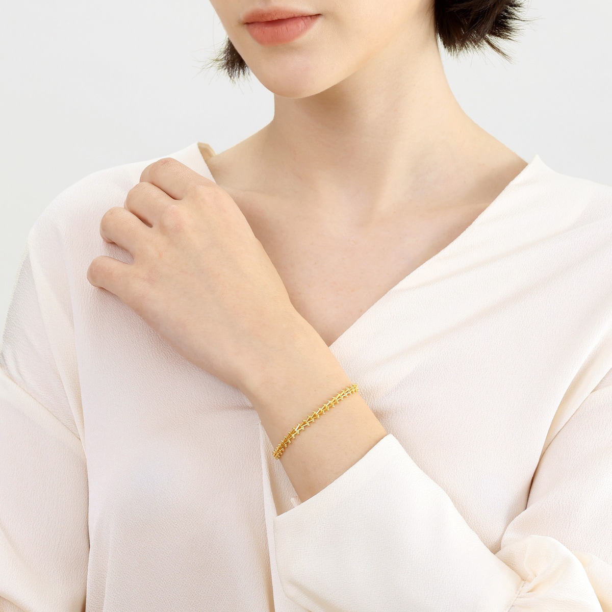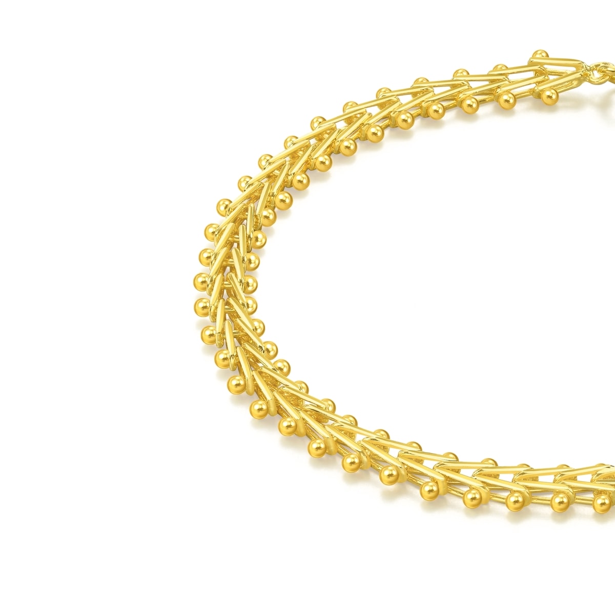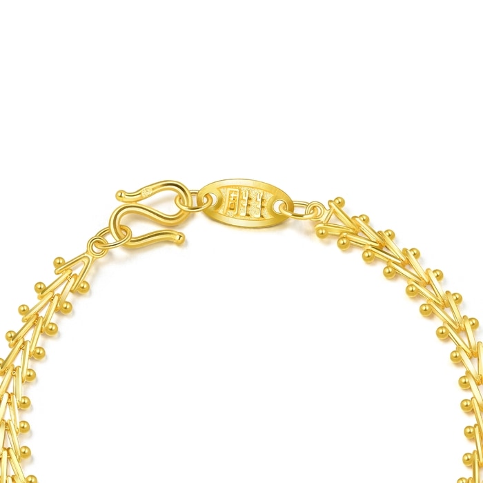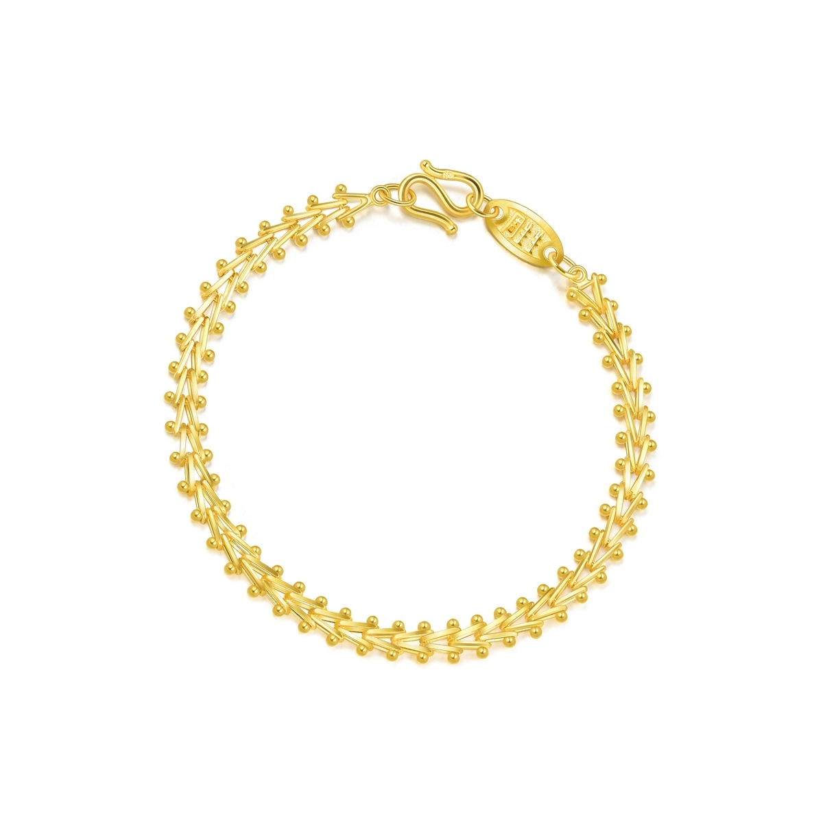 周生生足金手鍊採用復古魚骨鍊設計,風格清新婉約,散發迷人時尚氣息。