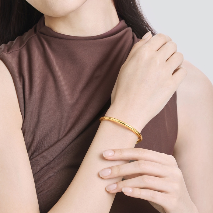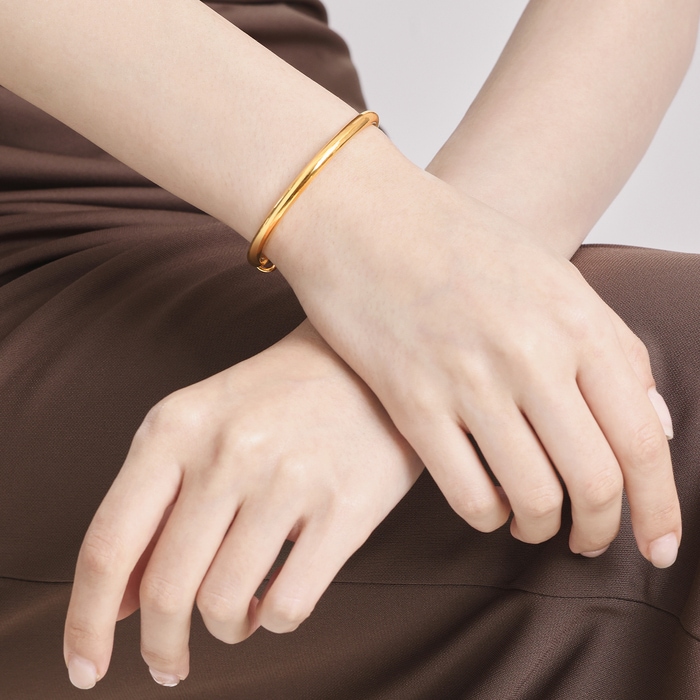 周生生小巧立體的手鐲,光面的外觀處理,簡單造型更顯精緻。