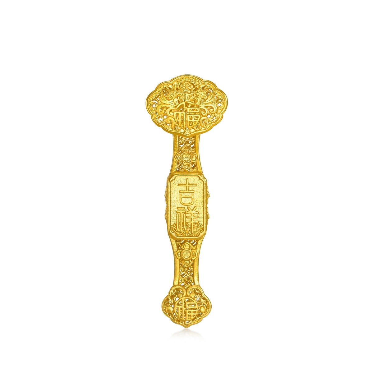 周生生足金如意迷你擺件精緻小巧,極具收藏價值。聚財如意以「吉祥」及「福」字點綴,寓意事事順心、富貴吉祥。