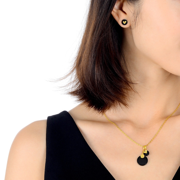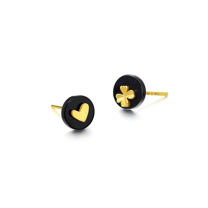 周生生以優雅亮麗的黑玉髓配以足金鑄造的心形及四葉草圖案,精巧細緻,寓意女孩擁抱愛與幸運。耳環採用不對稱設計,充滿時尚感,讓佩戴者散發自信魅力。