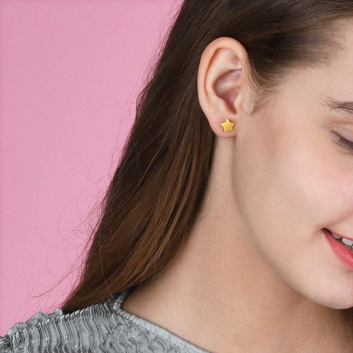 單隻黃金五角星耳環,以噴砂工藝打造富有質感的閃礫效果。設計簡約可愛,適合混搭不同款式,造型多變好玩。