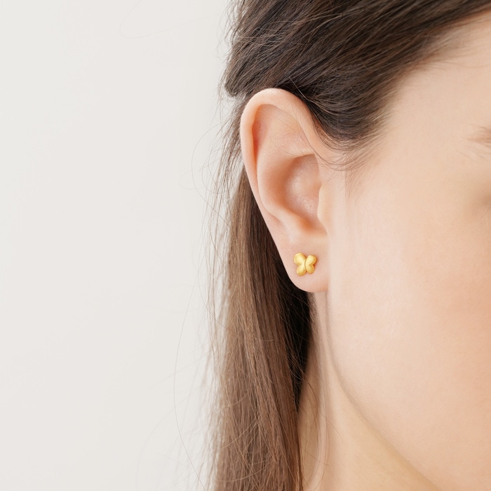 周生生足金蝴蝶耳環,簡潔可愛,適合日常佩戴。
