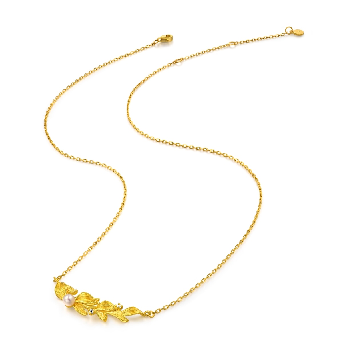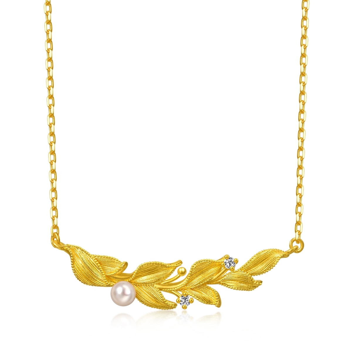 「微糖」999.9黃金鑲嵌鑽石珍珠頸鍊