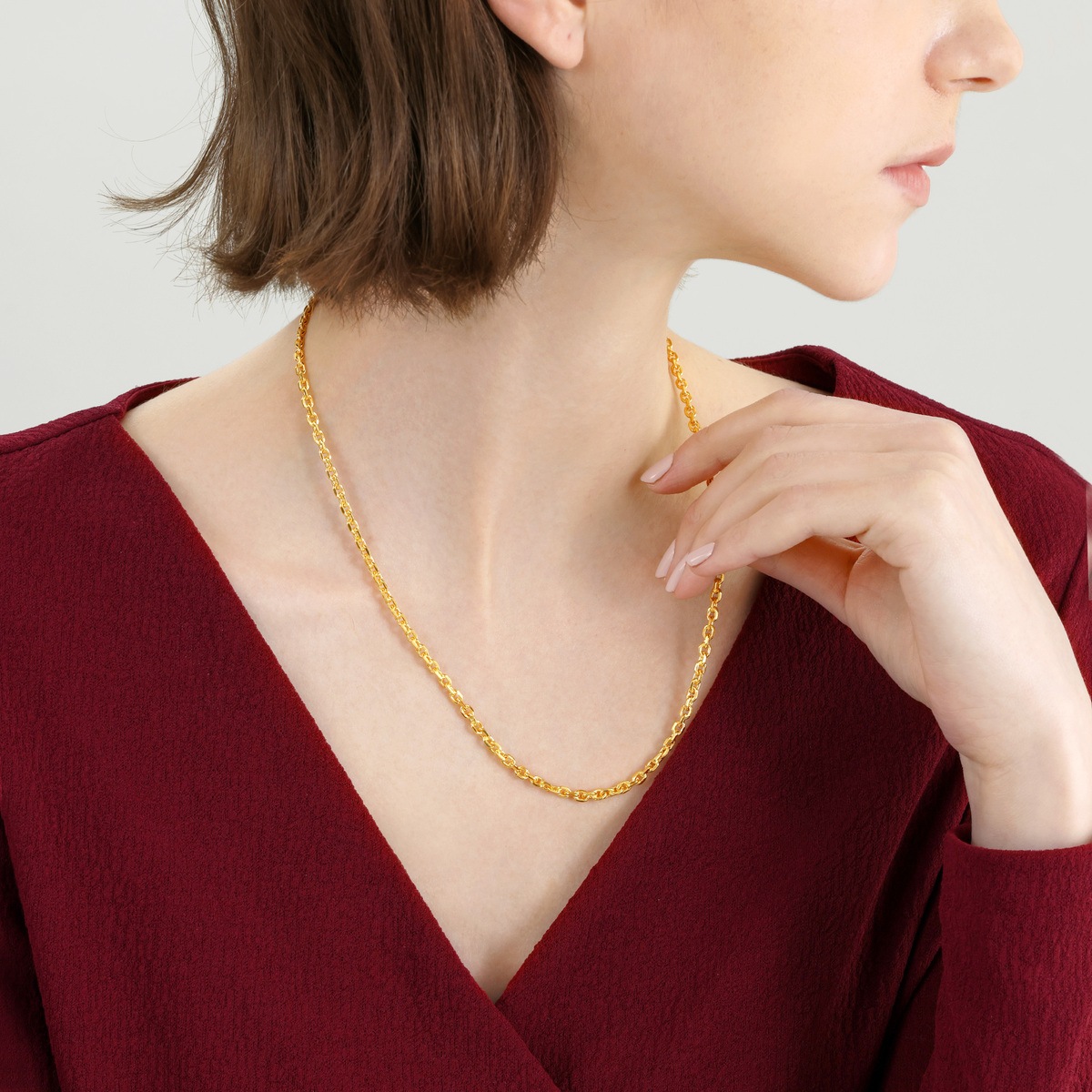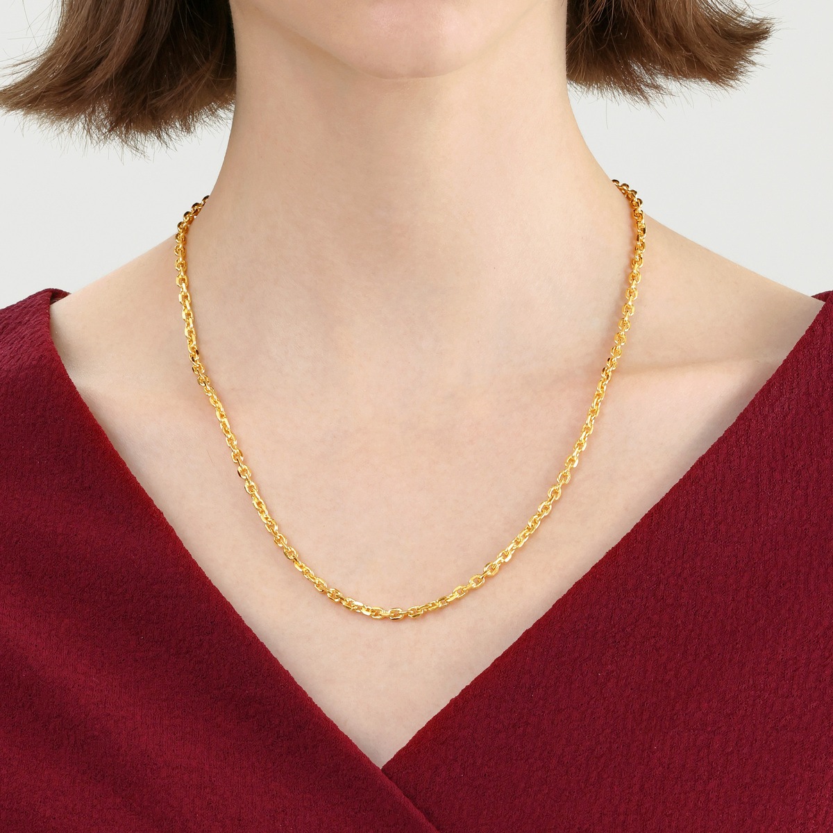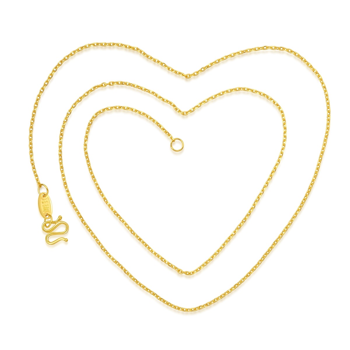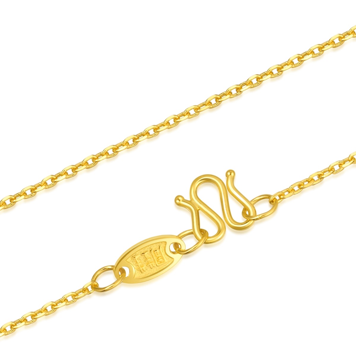 周生生足金頸鍊採用「萬字鍊」型設計,簡約大方、經典百搭,無論是單獨佩戴,或配搭各種吊墜造型,輕易打造時尚風格。