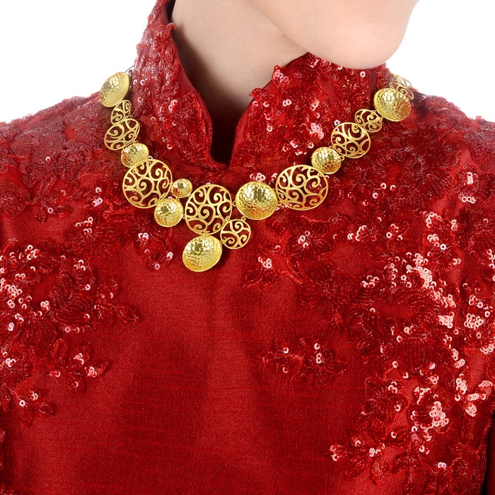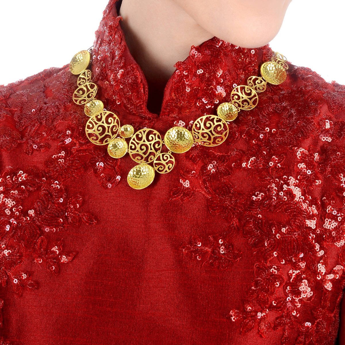 以果實花紋狀的實心圓搭配以連綿不斷的藤蔓繞成的圓圈,顯得傳統而特別。