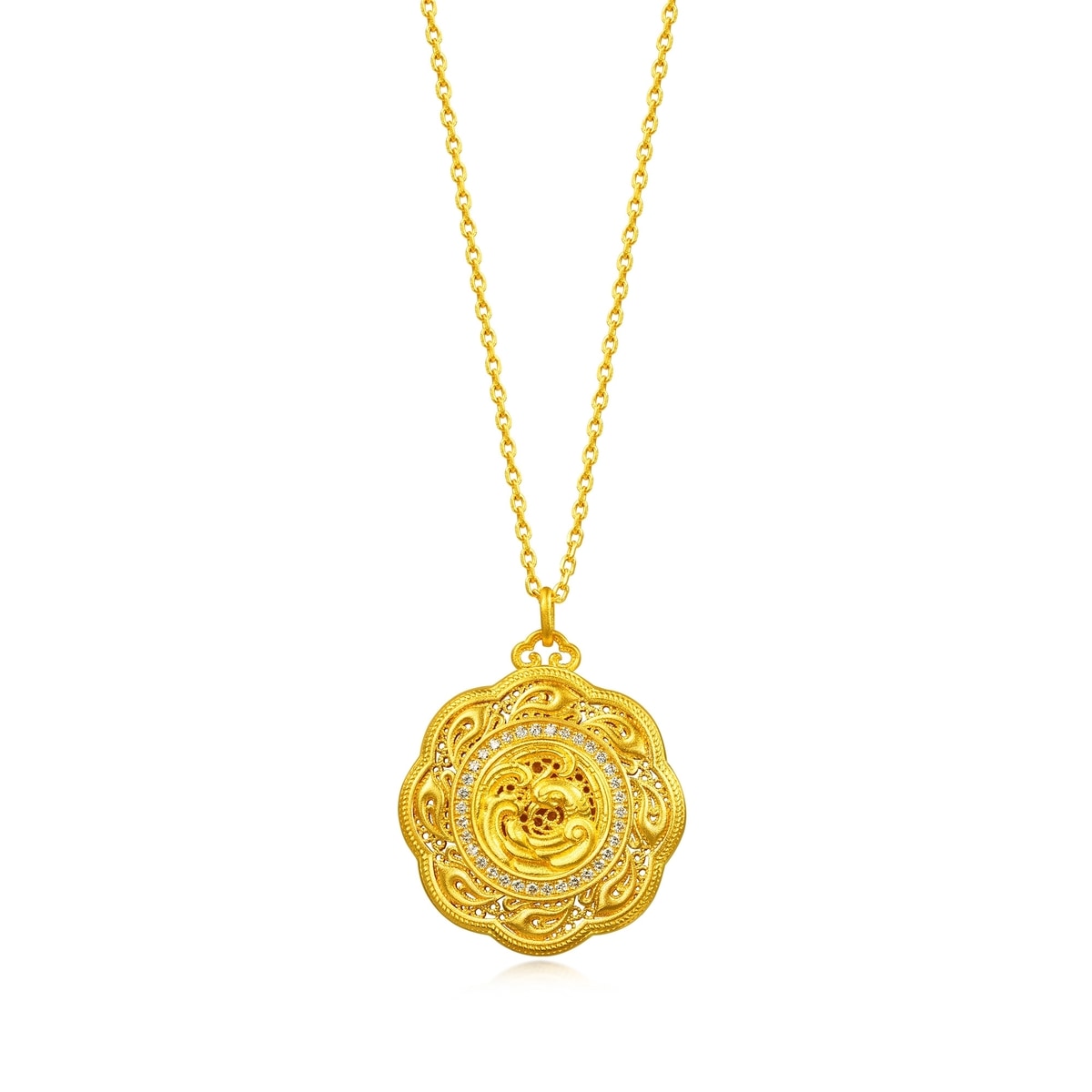 文化祝福 「東方古祖」999.9黃金鑲嵌鑽石鳳頸鍊
