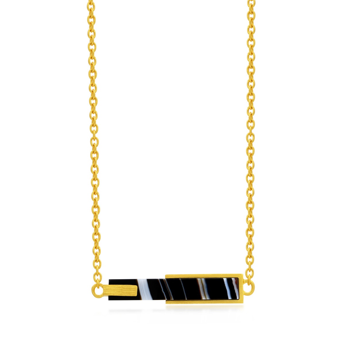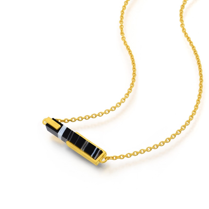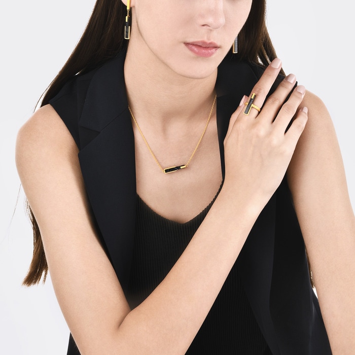 周生生頸鍊以黑瑪瑙搭配黃金拉絲工藝,天然的班紋紋理凸顯層次感,最能表現出都會女性優雅與時尚並重的魅力。