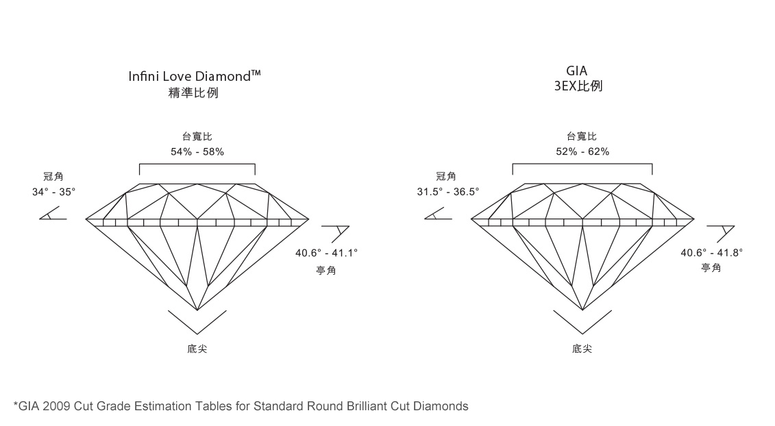 採用「Supreme Ideal Cut」切割的 Infini Love Diamond 擁有 57 個切割面,面與面之間的比例、角度,有極為苛刻的規範參數,比全球最具權威的鑽石鑑定機構 GIA 所定立的參數下限及上限更嚴謹。