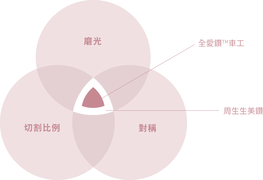 車工+ 是鑽石 4C 中唯一的人為因素,也是最影響鑽石閃亮度的因素。99% 周生生美鑽車工等級達 Very Good 或以上