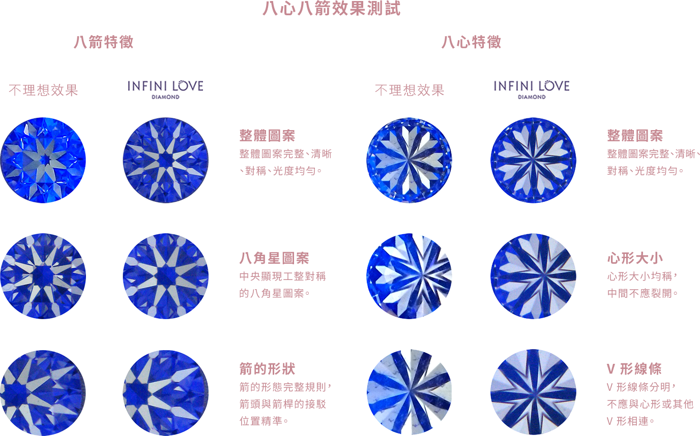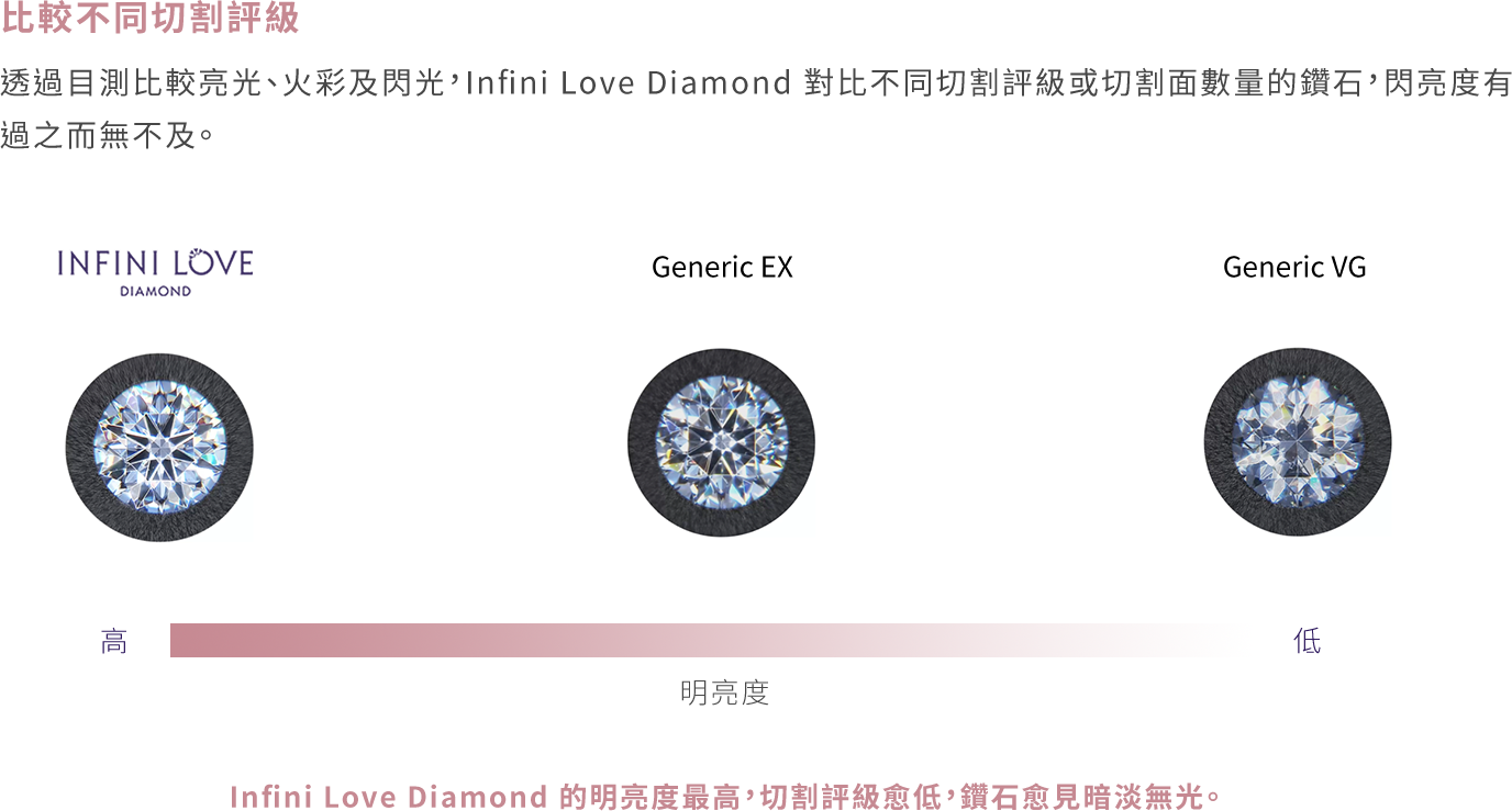 Infini Love Diamond™ 的每個切割面均打磨得光滑平順,能反射出平均而耀目的光芒。