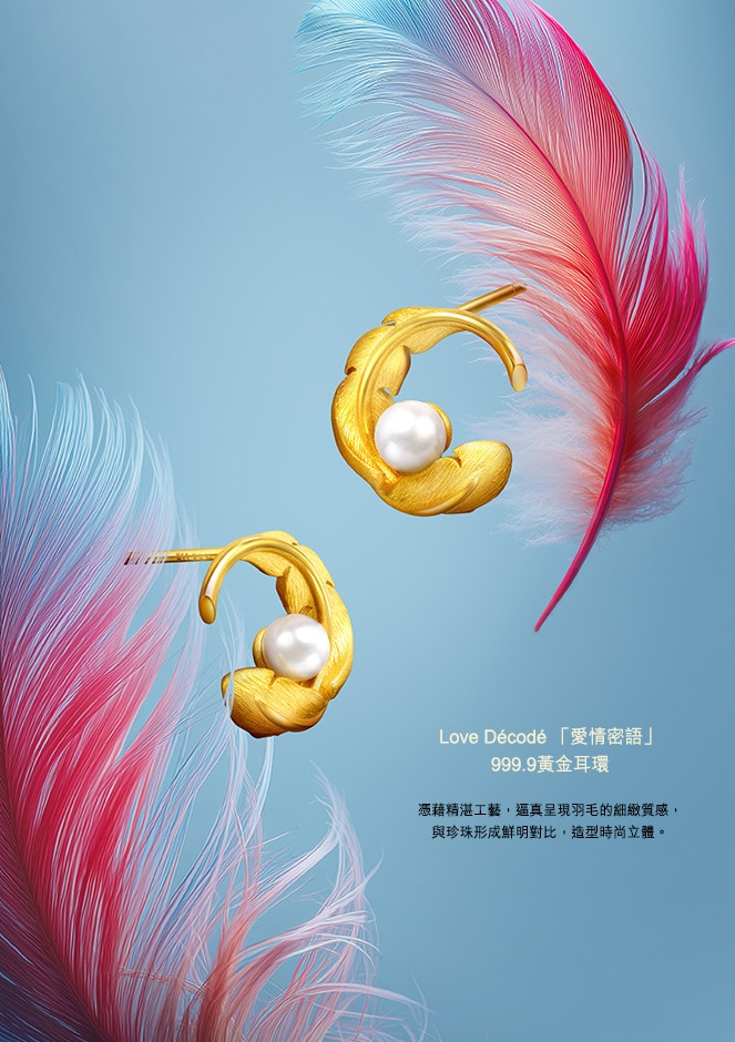 在自然界中經常見到的「羽毛」,象徵永恆的愛與守護。周生生以多種不同的材質,展現羽毛的不同美感和愛意。