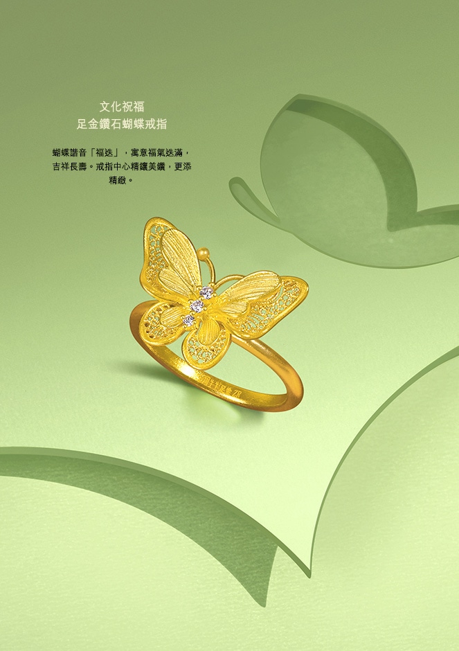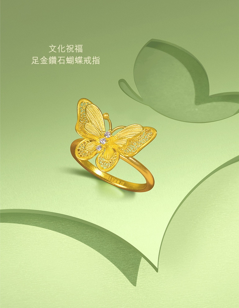 於花間飛舞的蝴蝶自帶氣質。周生生參考蝴蝶的美態,設計一系列蝴蝶飾品,讓您散發優雅氣質。