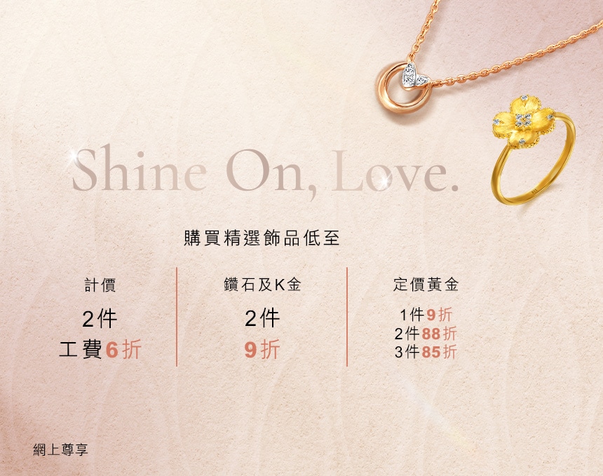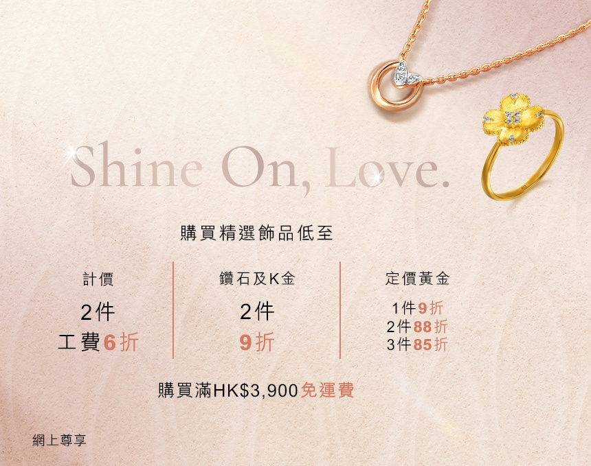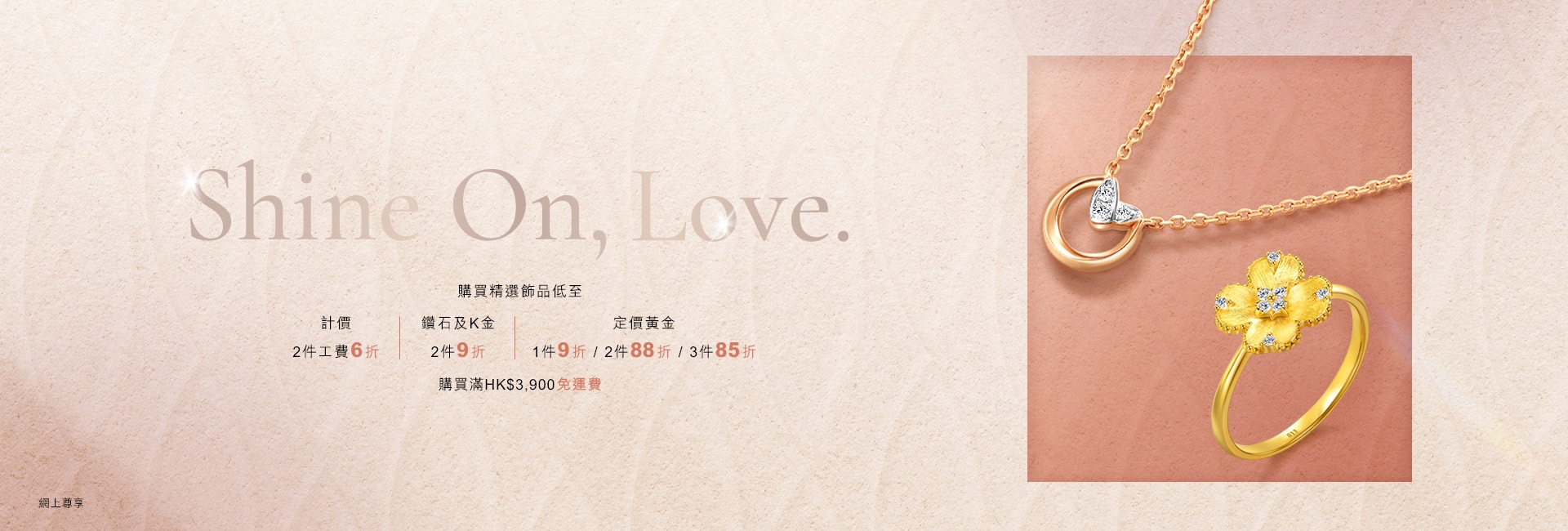 低至5折飾品,每滿HK$3,000額外HK$100折扣;每2件 Charme 贈配繩乙條