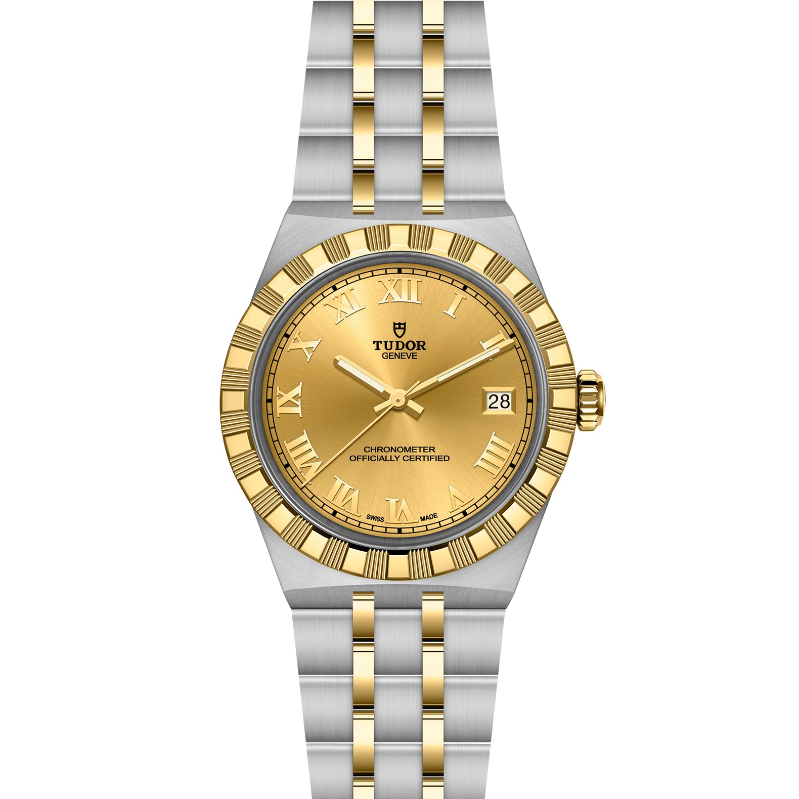 旋入式上鏈錶冠,飾以浮雕帝舵表標誌; 由鋼芯及0.1毫米黃金包金製成