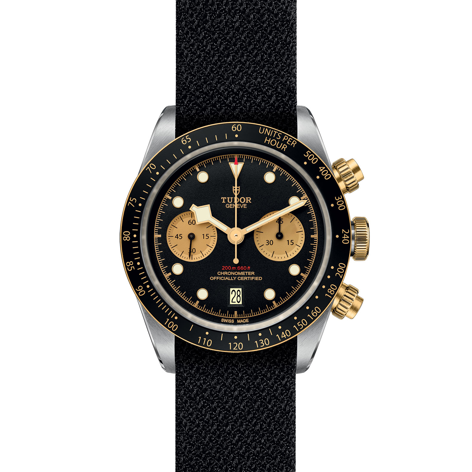 旋入式上鏈錶冠,飾以浮雕帝舵表玫瑰標誌:黃金旋入式按鈕位於2點鐘及4點鐘位置;精鋼覆有0.3毫米18K黃金薄層